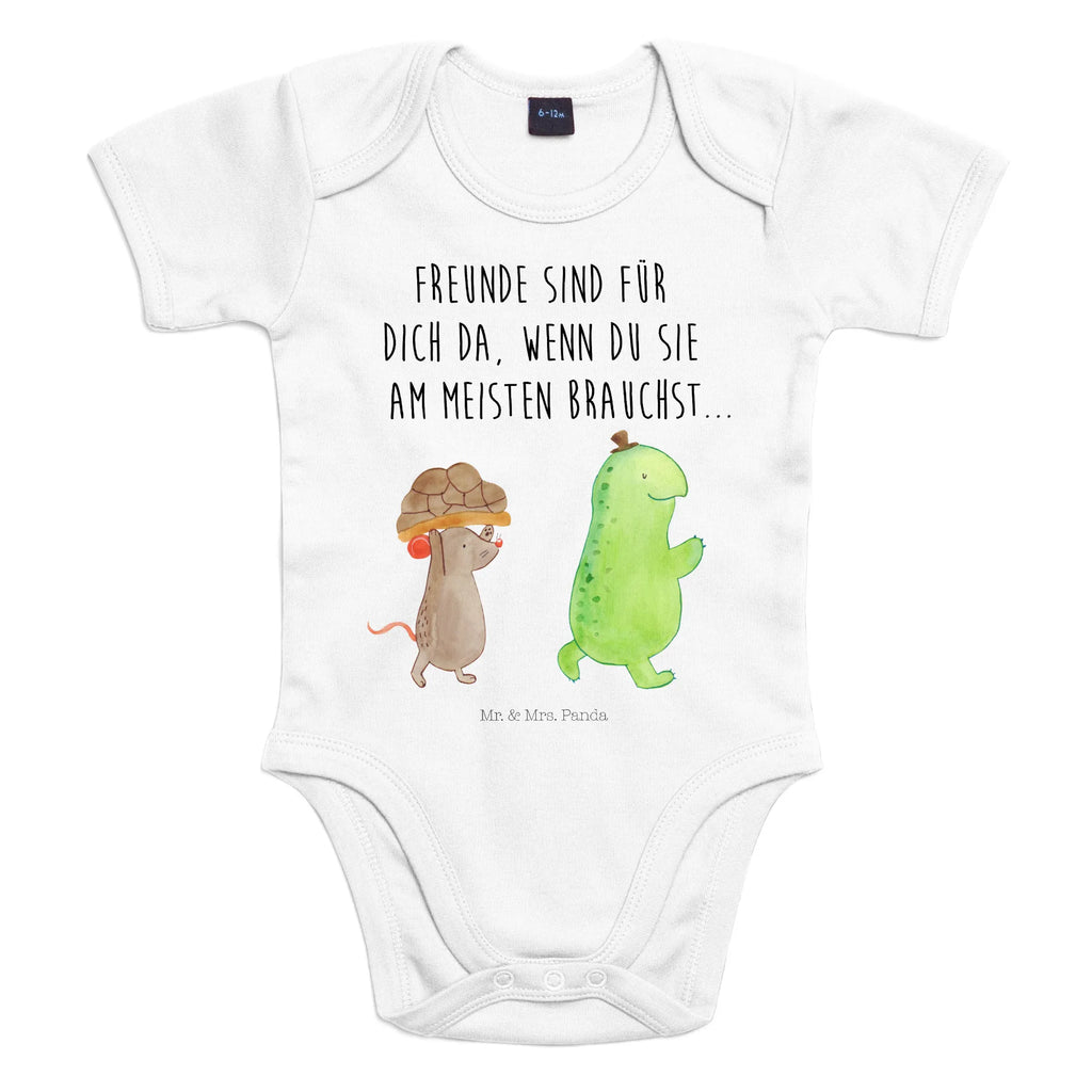 Entdecke den zauberhaften Organic Baby Body mit dem süßen Motiv von Schildkröte und Maus aus der besonderen Schildkröten-Kollektion von Mr. & Mrs. Panda! Dieses einzigartige Design ist nicht nur ein echter Hingucker, sondern auch das perfekte Geschenk für die Kleinen und ihre Eltern. Unsere liebevoll gestaltete Schildkröte, die fröhlich voran marschiert, wird von der winzigen Maus begleitet, die tapfer ihren Schildkrötenpanzer trägt. Gemeinsam zelebrieren sie die Freude an der Freundschaft – denn wie der Spruch sagt: 'Freunde sind für dich da, wenn du sie am meisten brauchst...'