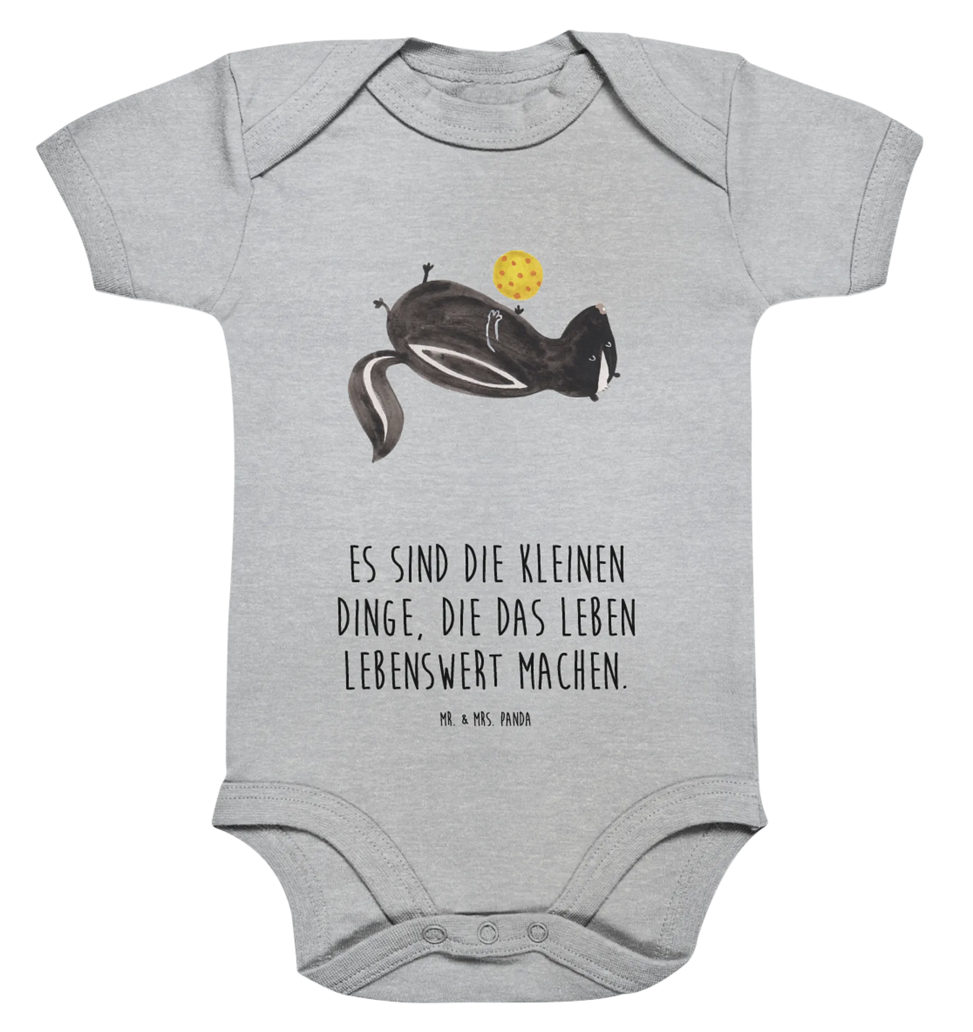 Das süße Stinktier Ball Baby Body aus der Stinktier-Kollektion von Mr. & Mrs. Panda ist das perfekte Geschenk für kleine Abenteurer von 3 bis 6 Monaten. Der Wickelbody ist aus hochwertiger, ökologischer Baumwolle gefertigt und sorgt für ein angenehmes Tragegefühl.