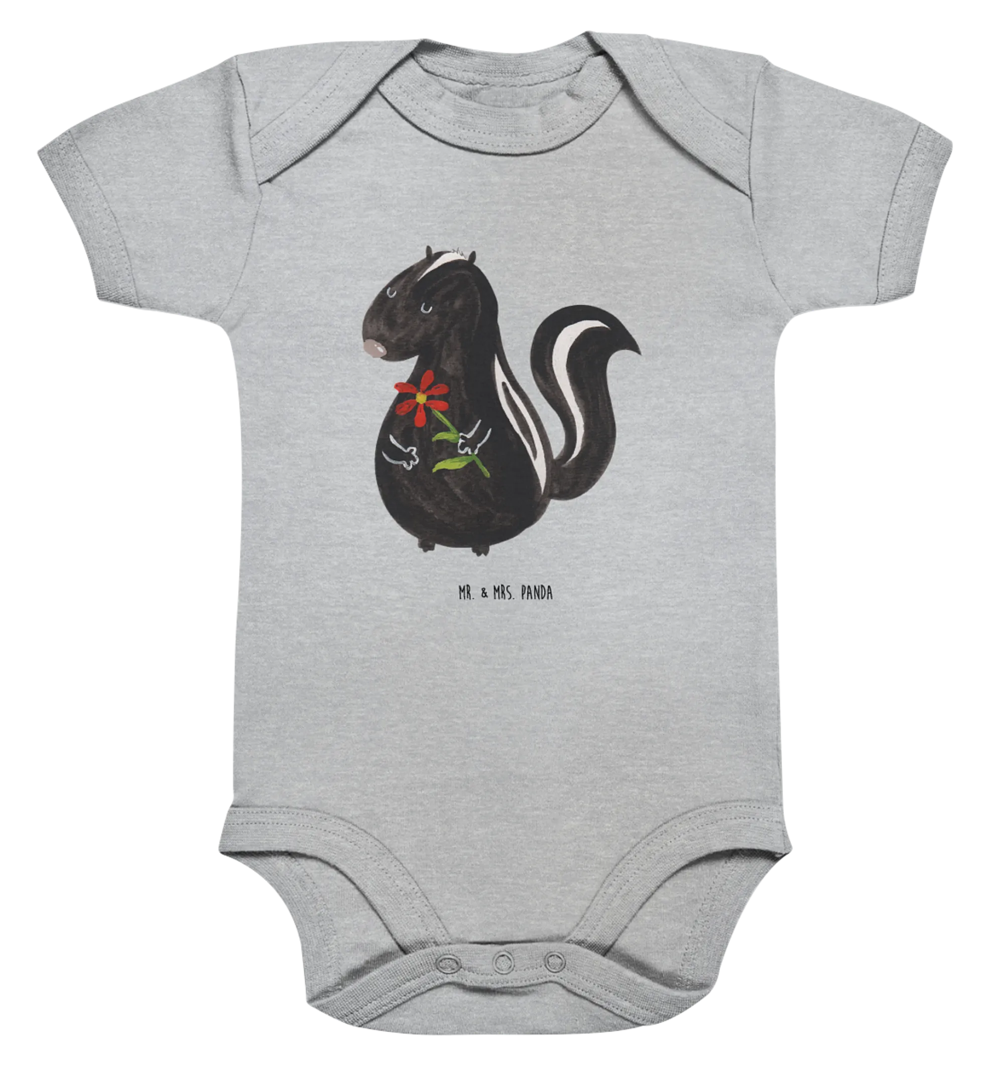 Der Organic Baby Body Stinktier Blume aus der bezaubernden Stinktier-Kollektion von Mr. & Mrs. Panda ist das perfekte Geschenk für Babys zwischen 1 und 3 Monaten. Dieses niedliche Kleidungsstück vereint Qualität und Stil auf eine wunderbare Art und Weise. Hergestellt aus 100 % Öko-Baumwolle, sorgt der Body für ein angenehmes Tragegefühl und ist gleichzeitig sanft zur Babyhaut.