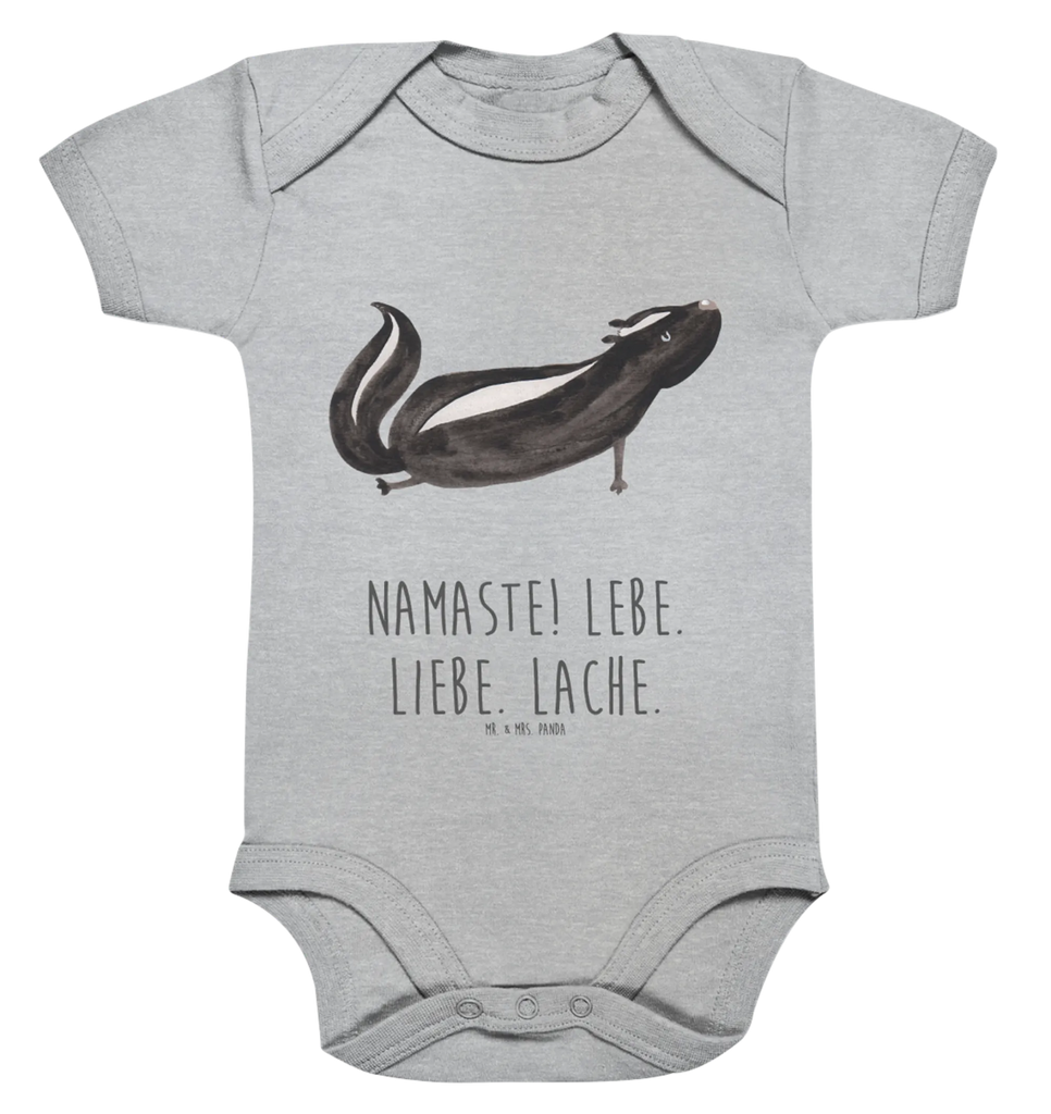 Das Organic Baby Body mit dem süßen Stinktier Yoga Motiv aus der Stinktier-Kollektion von Mr. & Mrs. Panda ist das perfekte Geschenk für frischgebackene Eltern oder zur Baby-Erstausstattung. Der Strampler überzeugt nicht nur durch sein niedliches Design, sondern auch durch seine hochwertige Verarbeitung aus 100% Bio-Baumwolle. Mit einem angenehmen, weichen Gefühl auf der Haut ist er ideal für die zarte Babyhaut.