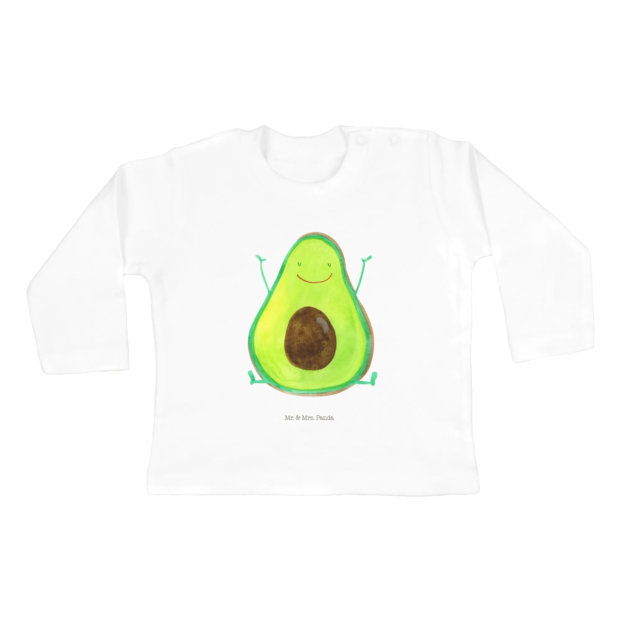 Suchst du nach dem perfekten Geschenk für einen kleinen Erdenbürger im Alter von 12-18 Monaten? Dann ist das langärmlige Baby Longsleeve "Avocado Happy" aus der liebevollen Avocado Kollektion von Mr. & Mrs. Panda genau das richtige für dich!