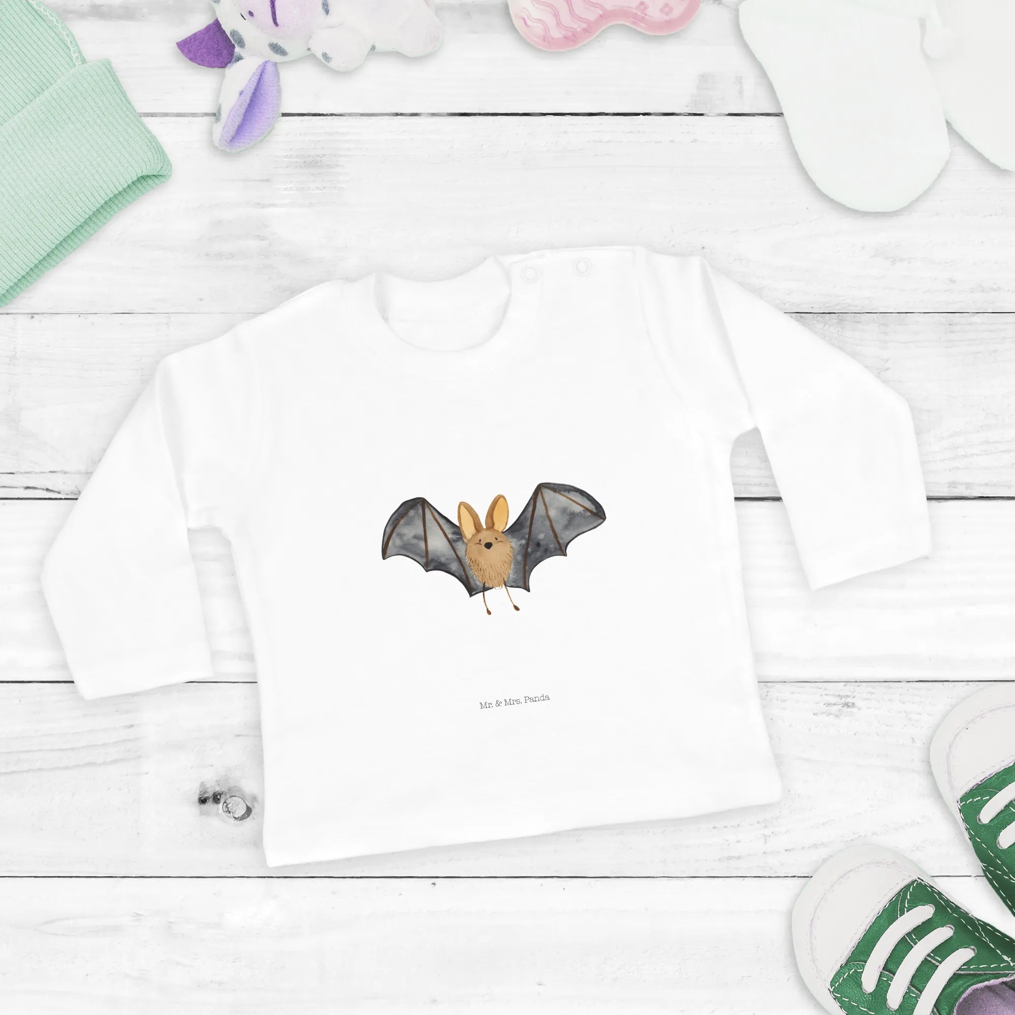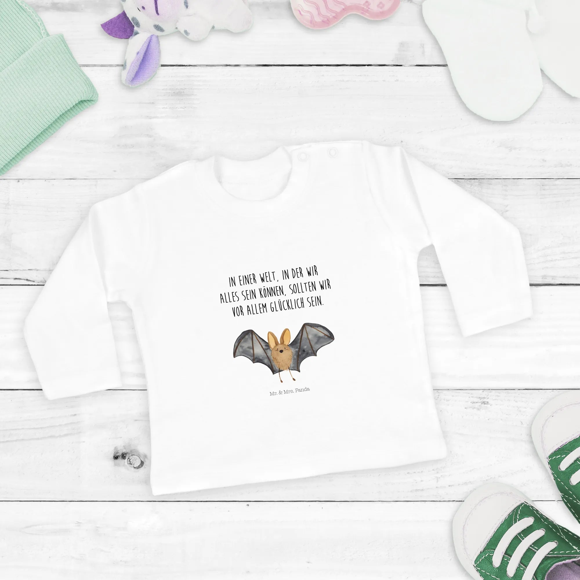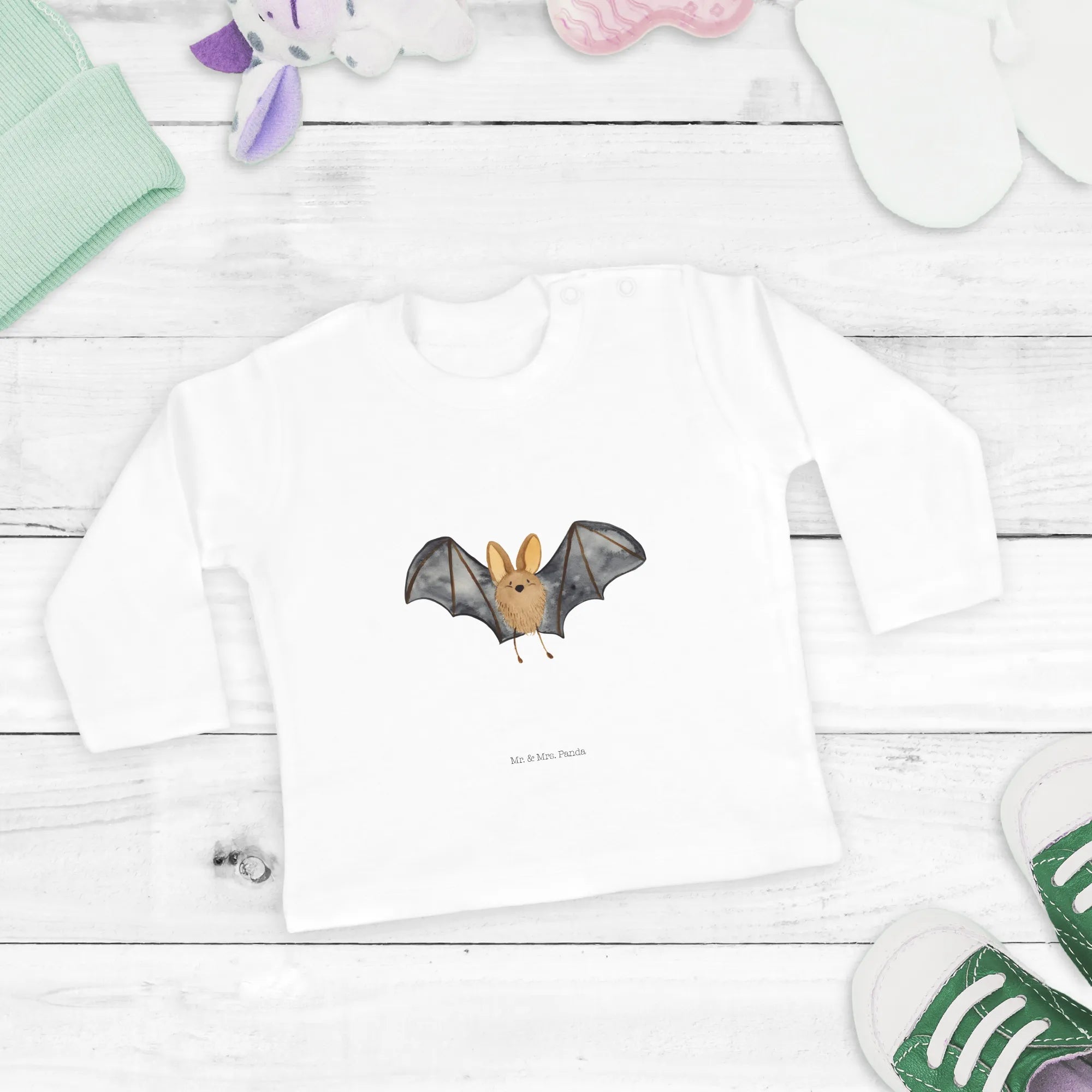 Entdecke das perfekte Baby Langarmshirt für die Kleinen: das Fledermaus Flügel Langarmshirt aus der bezaubernden Small World Kollektion von Mr. & Mrs. Panda.