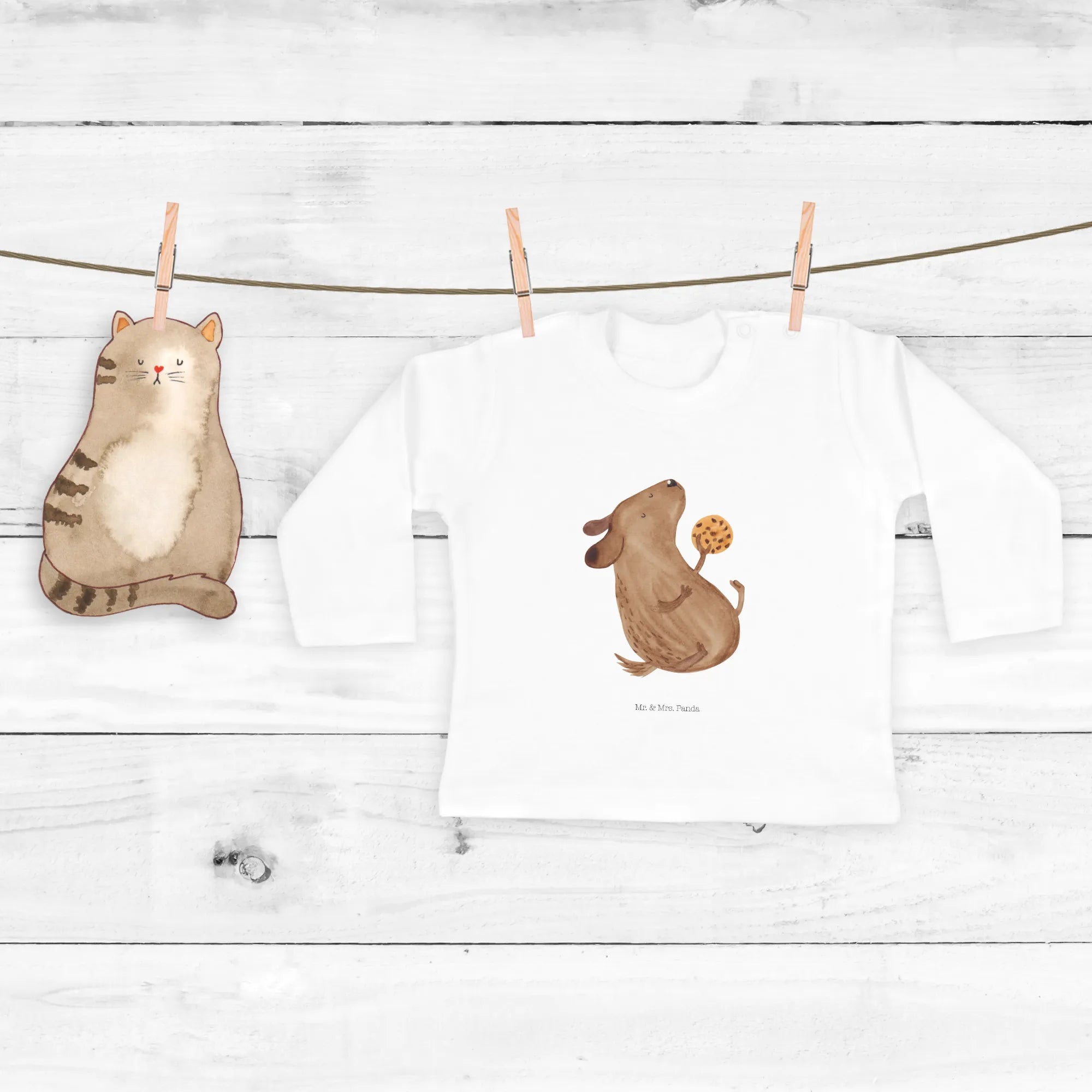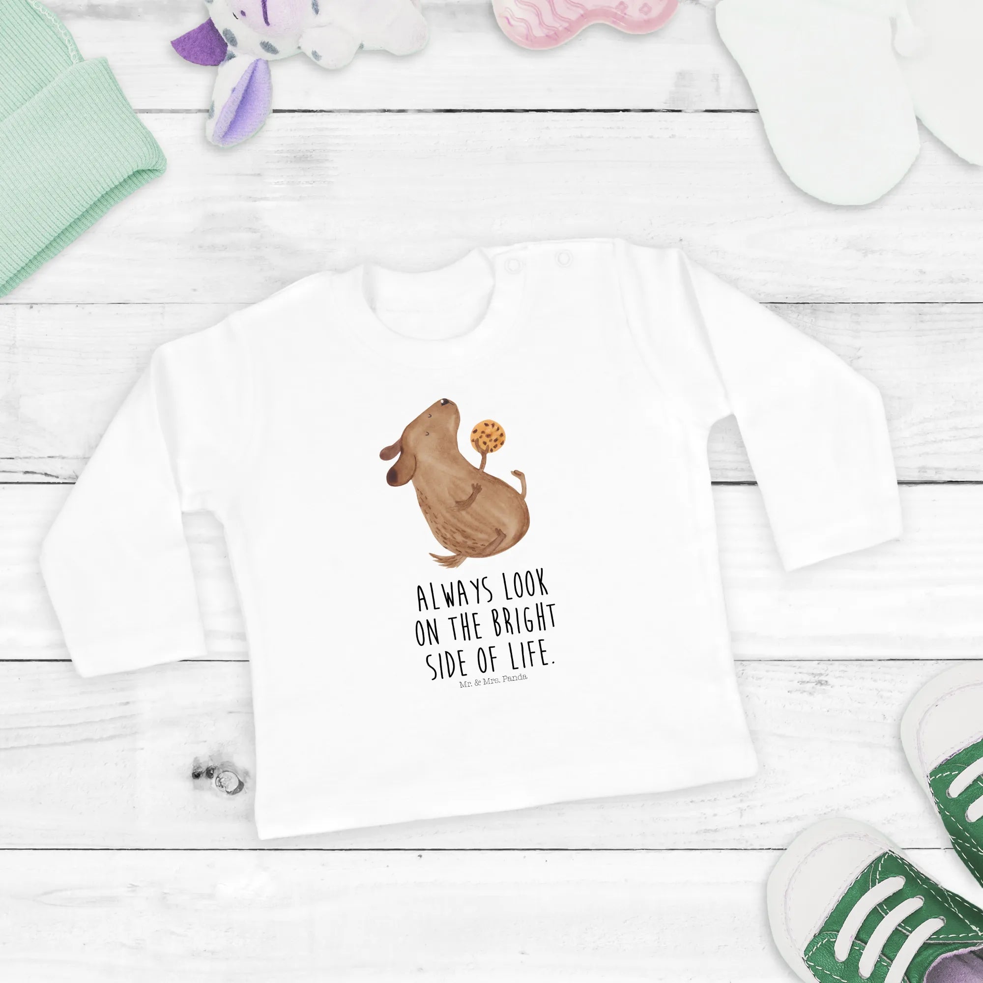Entdecke das süße 3-6 Monate Baby Langarmshirt mit dem bezaubernden Hund Keks Motiv aus der Hunde Kollektion von Mr. & Mrs. Panda!