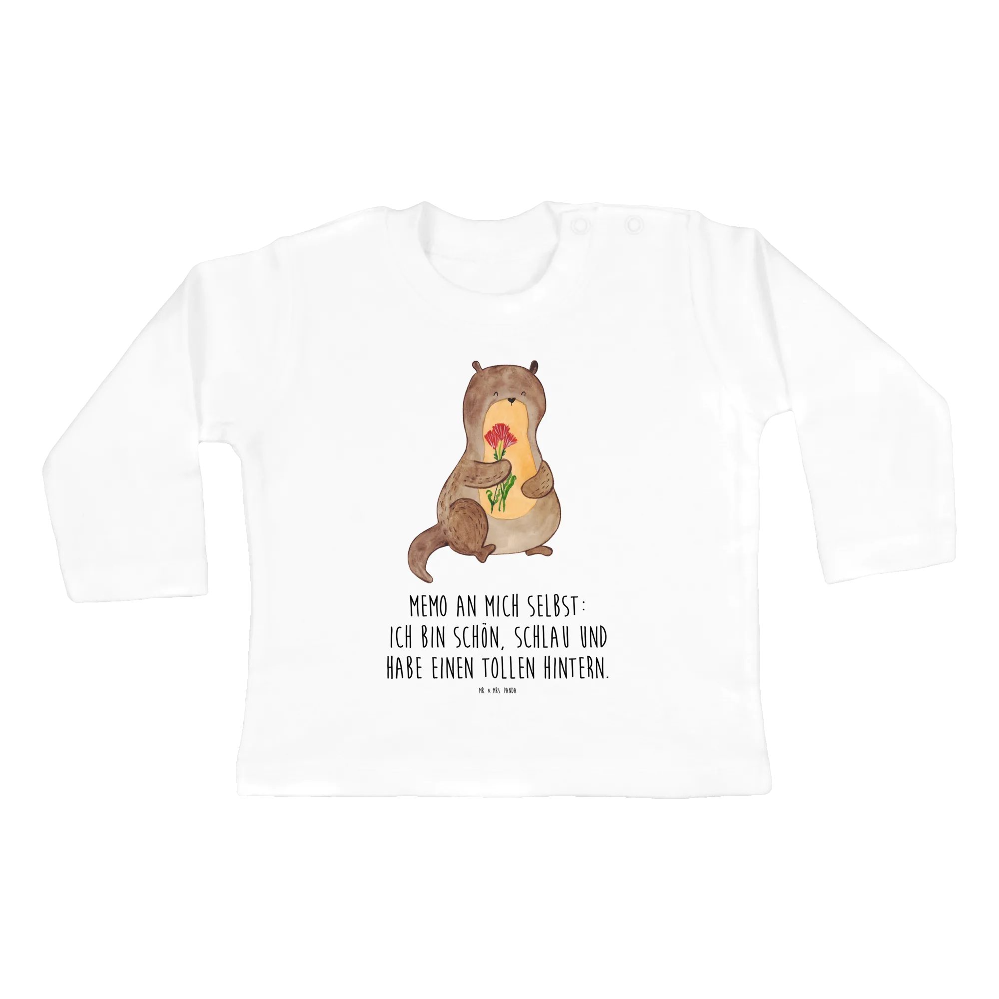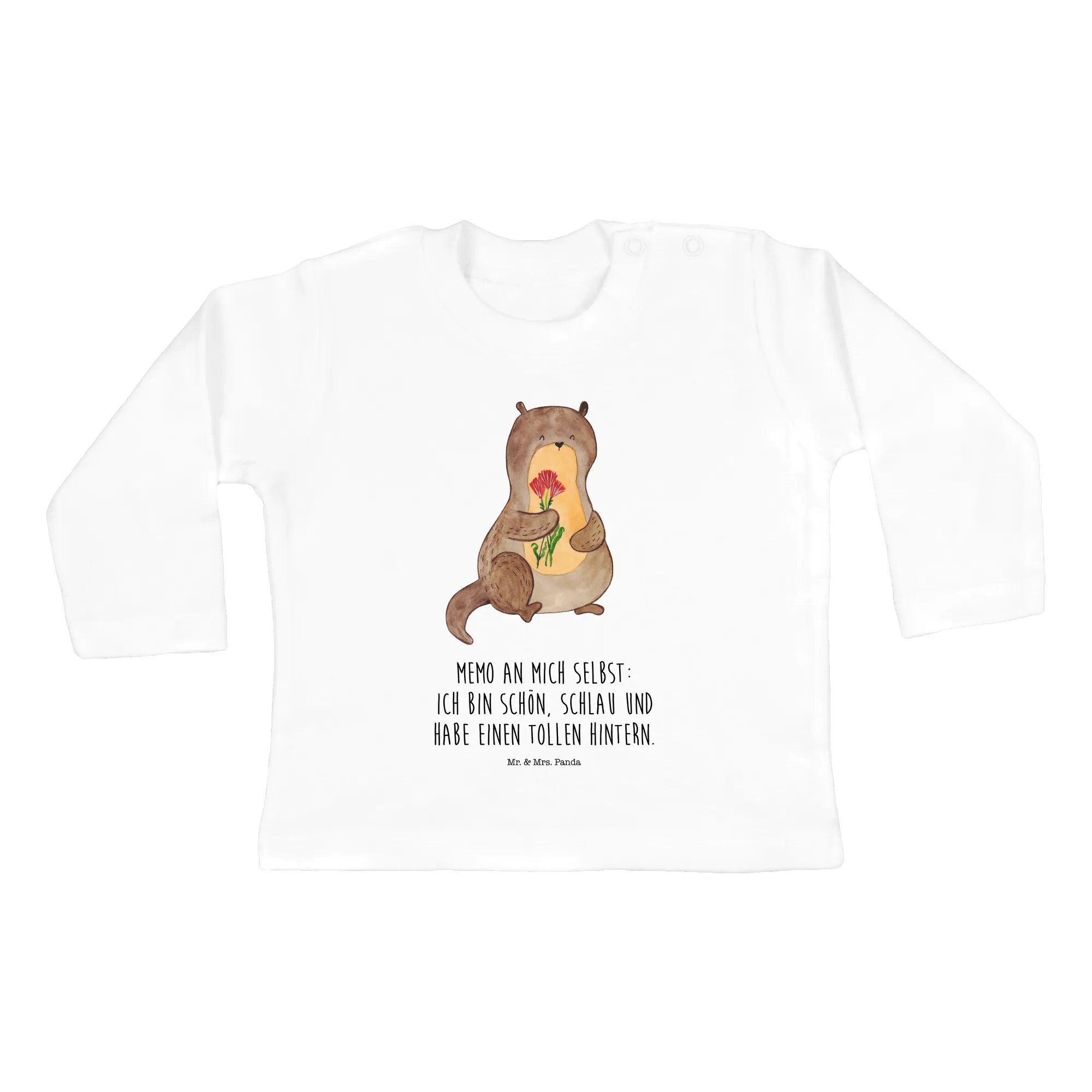 Entdecke das bezaubernde 6-12 Monate Baby Longsleeve 'Otter Blumenstrauß' aus der Otter-Kollektion von Mr. & Mrs. Panda!
