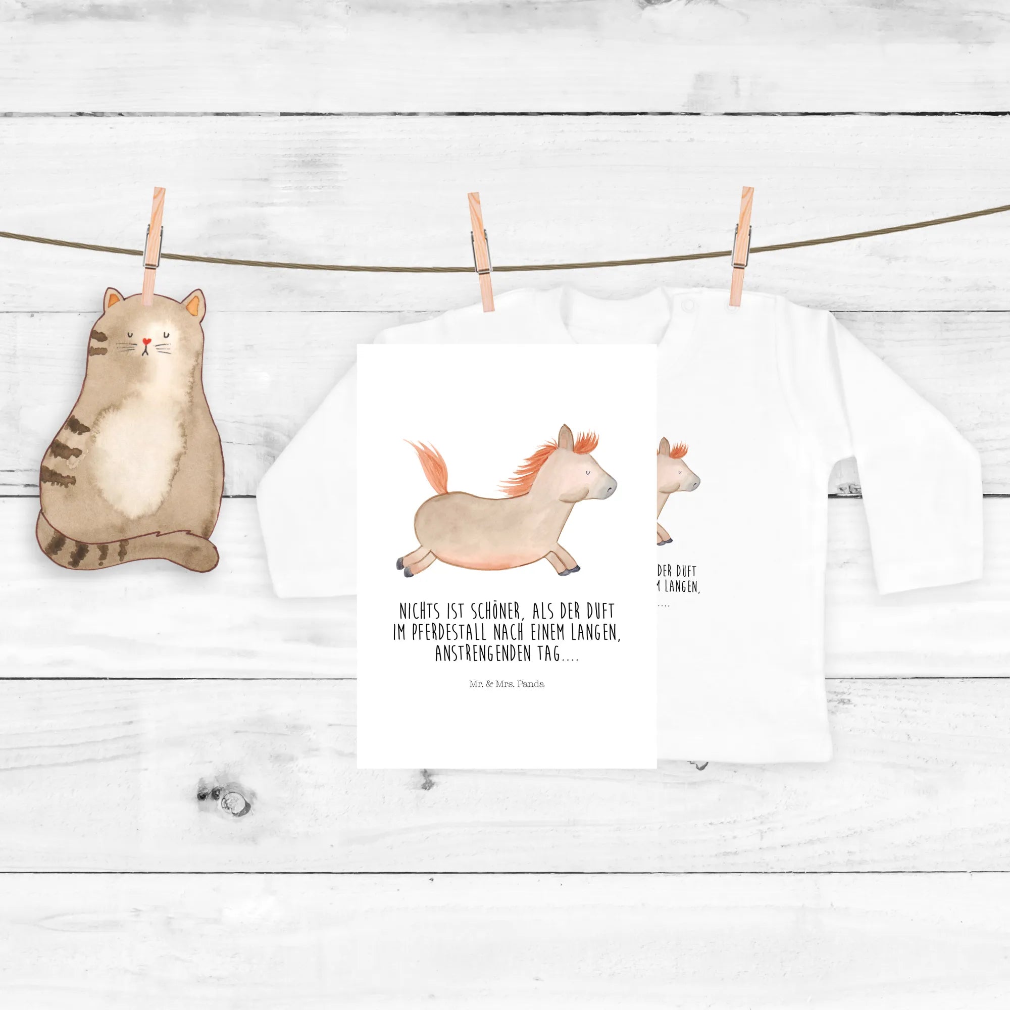 Perfekt für Eltern, die die Liebe zu Bauernhöfen, Ponys und Pferden leben. Hol dir jetzt das "Pferd springt" Baby Langarmoberteil und lass die Herzen aller Pferdefreunde höher schlagen! Jedes Shirt wird mit viel Liebe von Mr. & Mrs. Panda designt und bringt die wunderschöne Atmosphäre eines Pferdestalls direkt in das Leben deines kleinen Schatzes.