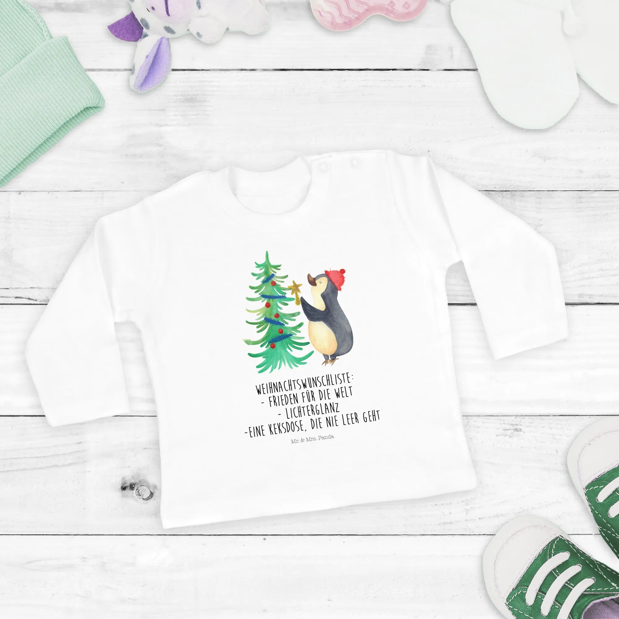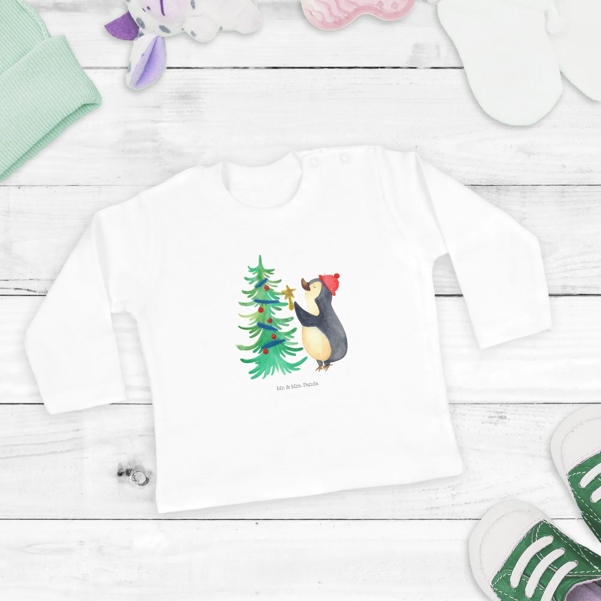Bist Du bereit für die zauberhafteste Zeit des Jahres? Unser 12-18 Monate Baby Langarmshirt mit dem niedlichen Pinguin Weihnachtsbaum aus der Winter Kollektion von Mr. & Mrs. Panda ist das perfekte Geschenk für kleine Winterfreunde! Wenn die Zeit des Keksebackens und der verschneiten Spaziergänge beginnt, ist dieses Langarmshirt genau das Richtige, um Deine kleinen Lieblinge warm und stylisch zu halten.