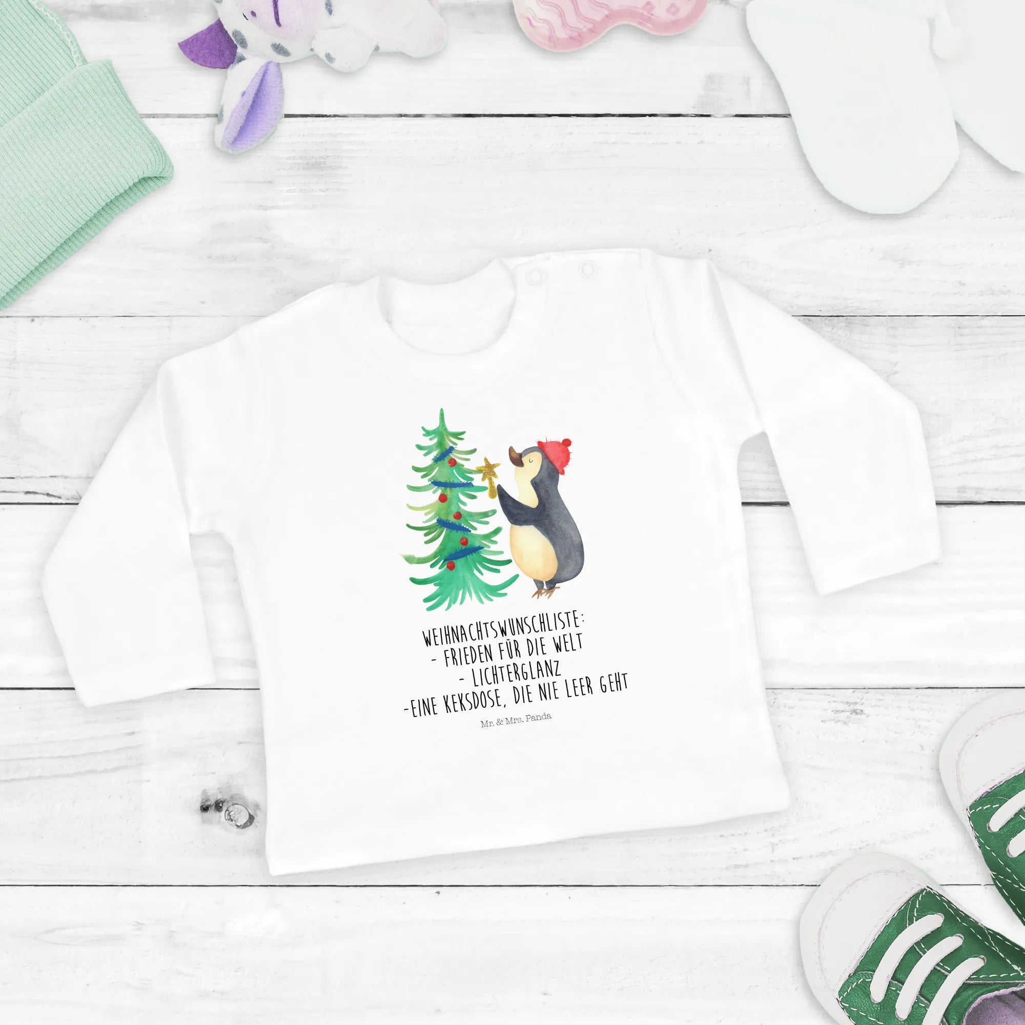 Entdecke das perfekte Geschenk für kleine Weihnachtsfreunde: unser niedliches 18-24 Monate Baby Longsleeve mit einem entzückenden Pinguin und Weihnachtsbaum Motiv aus der Winter Kollektion von Mr. & Mrs. Panda!