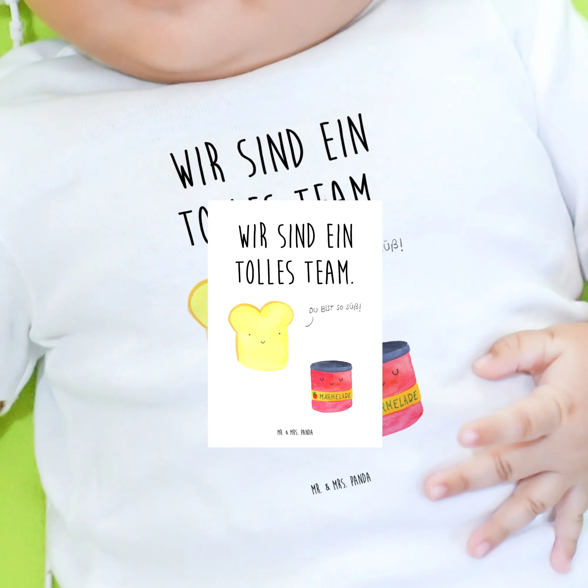 Das liebevolle Design zeigt zwei niedliche Toastscheiben, die zusammen mit einer kleinen Marmelade ein echtes Dreamteam bilden. Die niedliche Illustration strahlt gute Laune aus und bringt die süße Botschaft rüber: "Wir sind ein tolles Team!" - perfekt für jeden kleinen Schatz, der das Leben mit seinen Eltern darüber hinaus feiert.