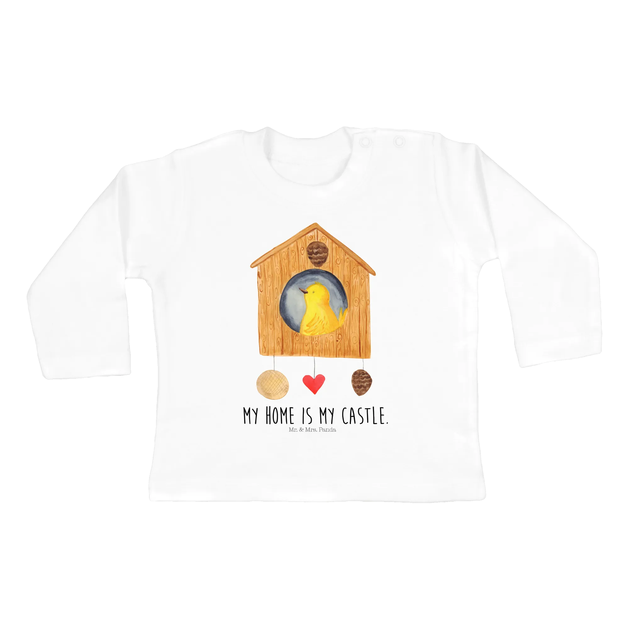 Das bezaubernde Design zeigt einen fröhlichen gelben Vogel, der in seinem schützenden Vogelhaus sitzt. Diese liebenswerte Darstellung steht nicht nur für die Schönheit der Natur, sondern symbolisiert auch das Gefühl von "Home sweet home". Mit dem Slogan "My home is my castle." wird jedes Baby und seine Familie daran erinnert, wie wertvoll ein Zuhause ist. Dieses Langarmshirt ist der perfekte Begleiter für kalte Tage, da es warm hält und gleichzeitig einen stilvollen Look bietet.