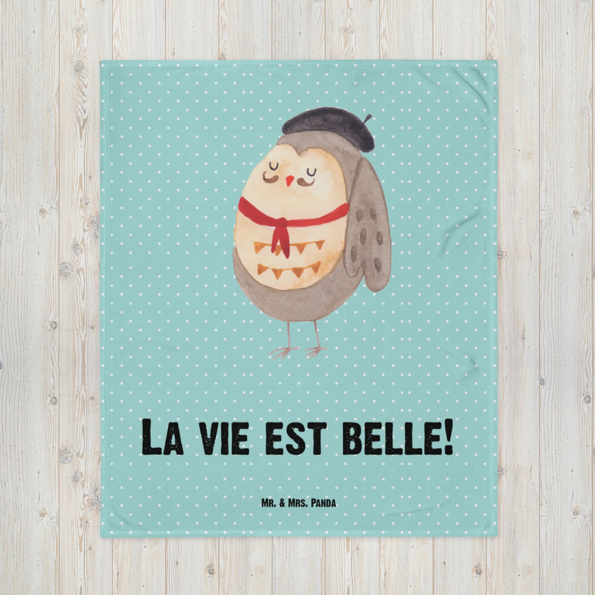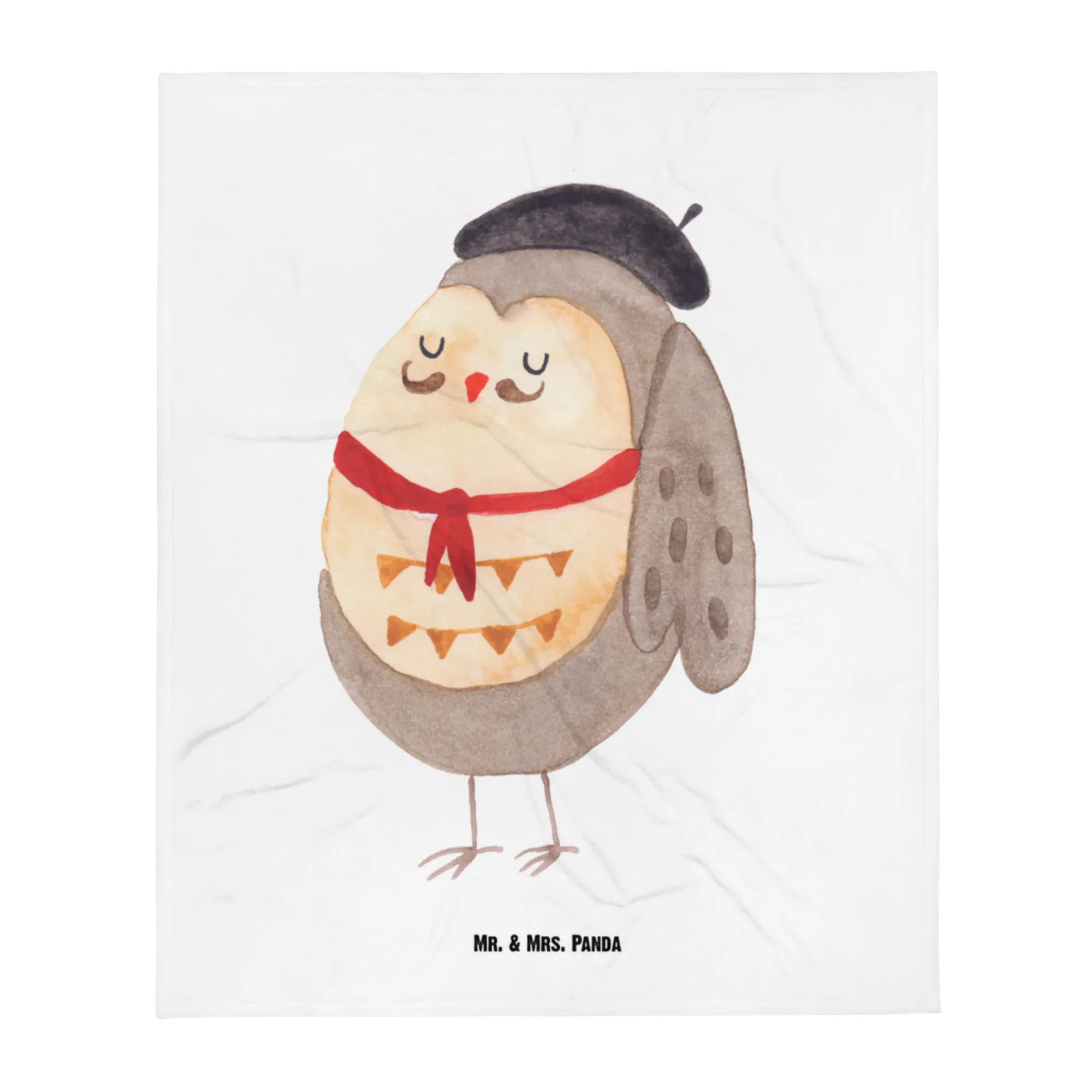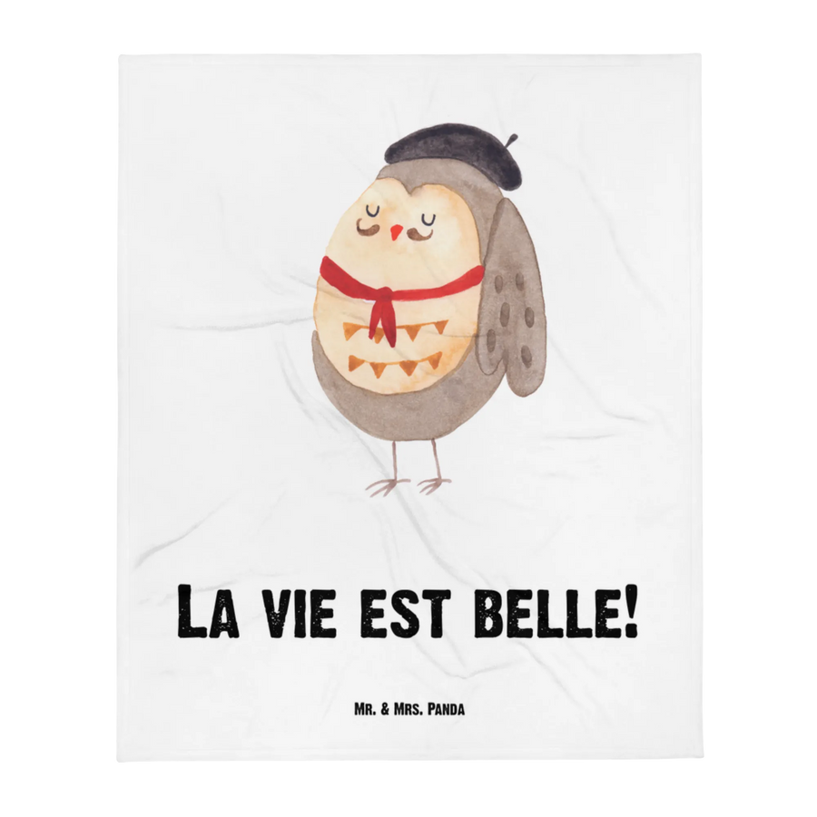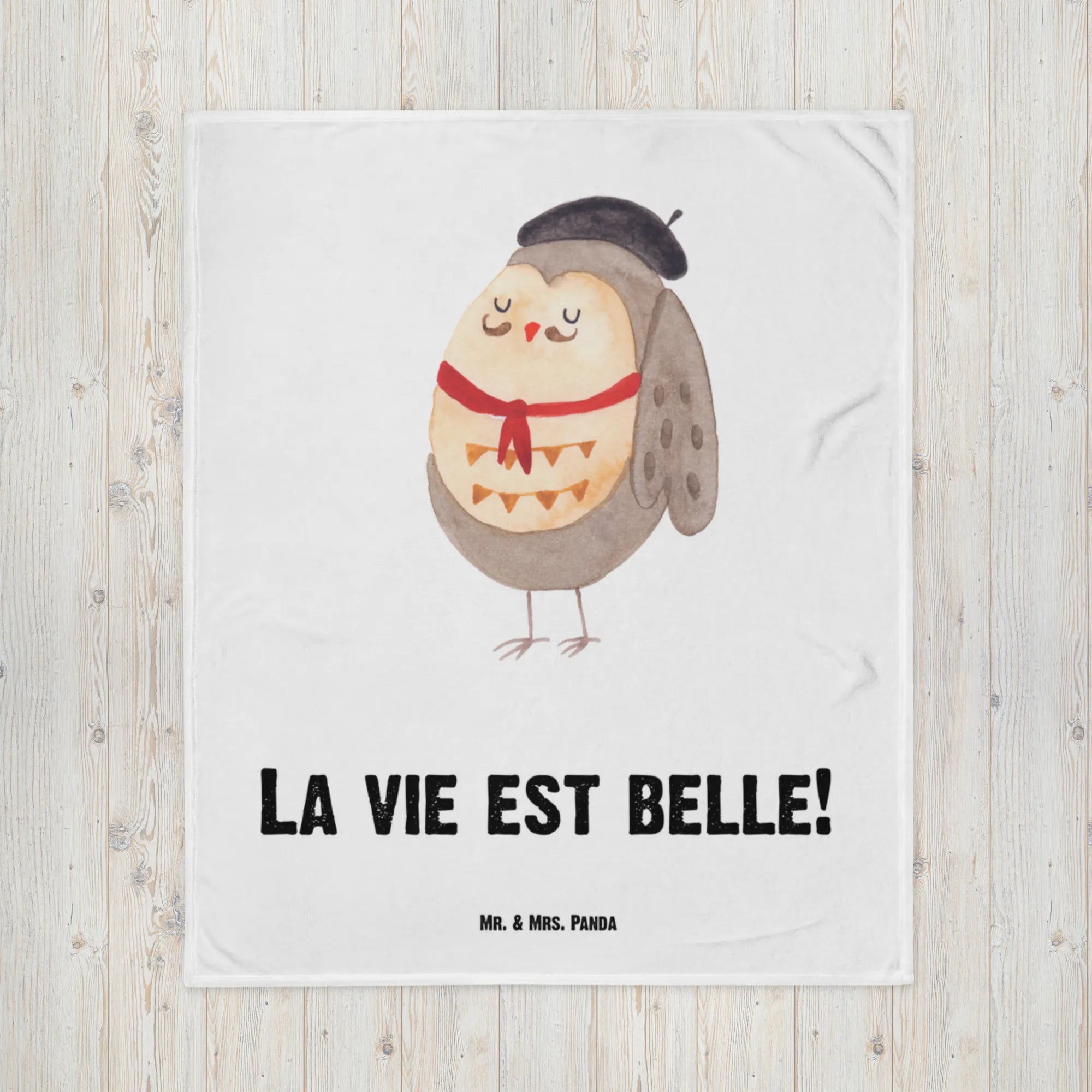 Babydecke Eule Frankreich - mit Spruch - Weiß