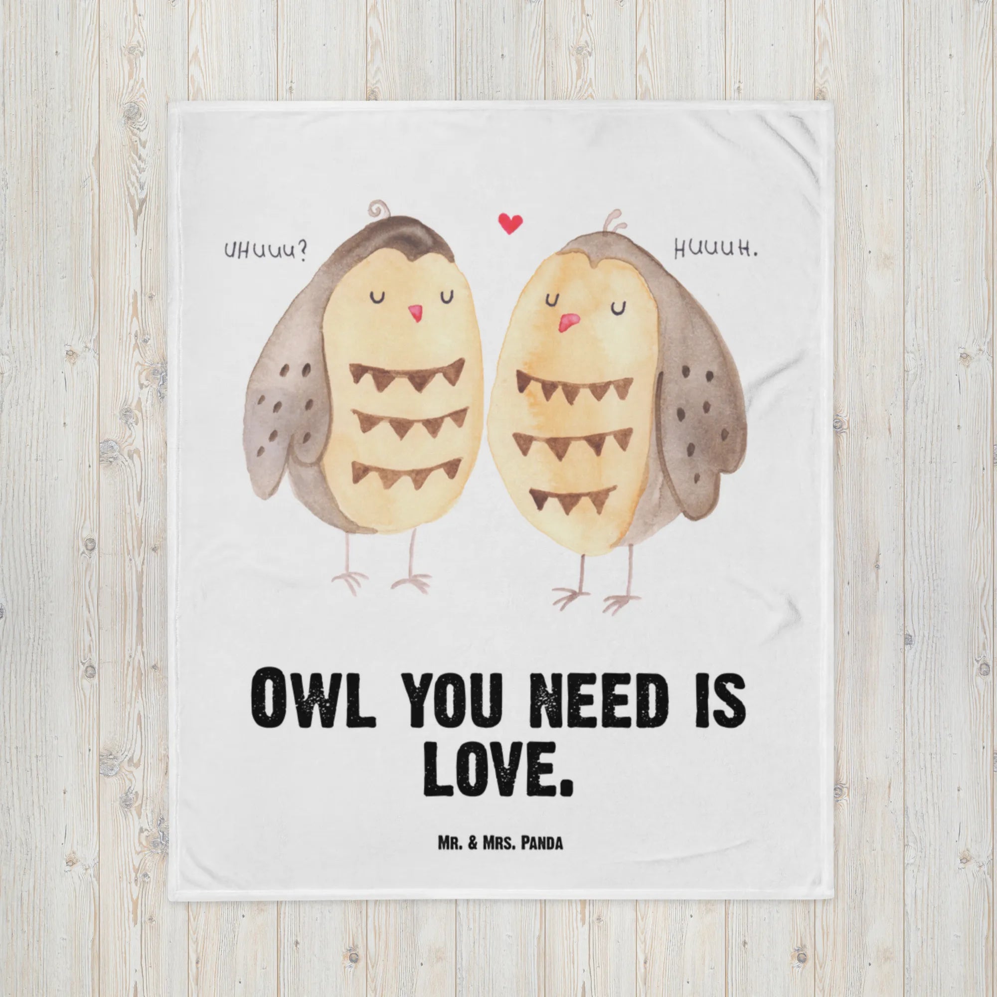 Babydecke Eulen Liebe - mit Spruch - Weiß