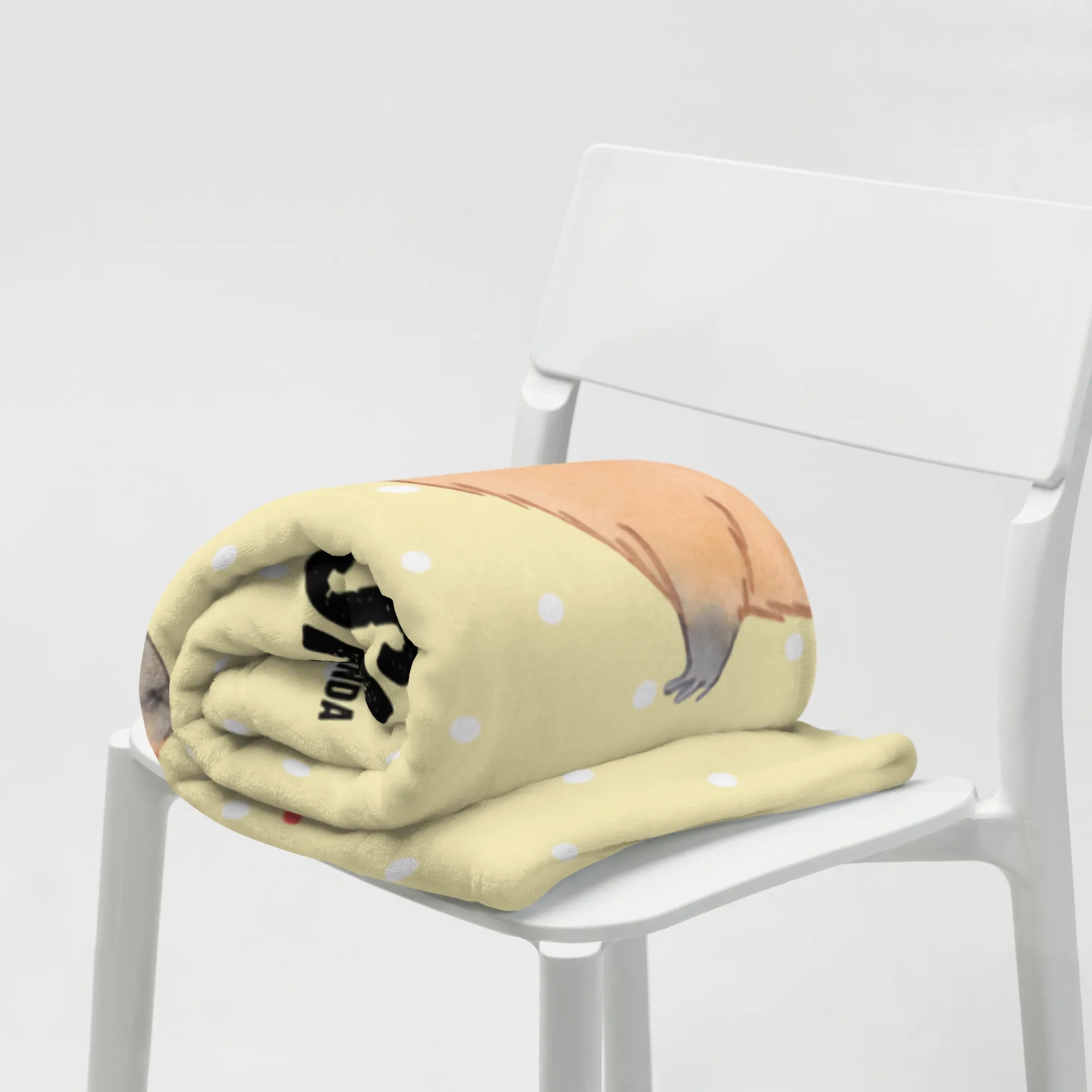 Die personalisierte Babydecke mit dem wunderschönen Motiv "Capybara Liebe" aus der Small World Kollektion von Mr. & Mrs. Panda ist das perfekte Geschenk für kleine Tierliebhaber und ihre Eltern. Diese kuschelige Babydecke wird nicht nur die Kleinsten begeistern, sondern auch Freude und Gemütlichkeit in jedes Kinderzimmer bringen. Mit einem liebevollen Design, das zwei süße Capybaras zeigt, die sich zärtlich berühren, symbolisiert diese Decke die enge Bindung zwischen den Liebsten. Das handgezeichnete Motiv strahlt Liebe und Zuneigung aus, und das kleine rote Herz über den Capybaras unterstreicht das Gefühl der Zusammengehörigkeit.