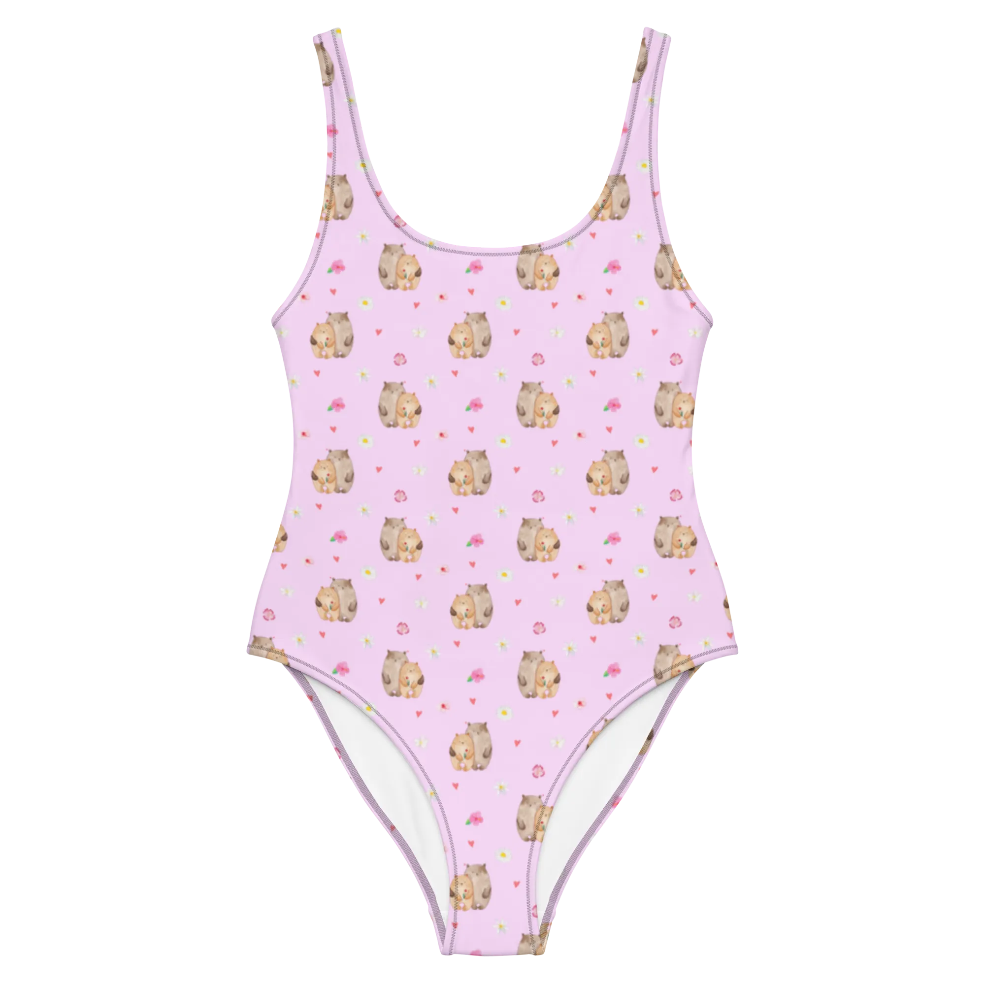 Mit einem einzigartigen Motiv, das zwei verliebte Bären darstellt, die schüchtern ein Herz formen und eine Blume tauschen, wird dieser Badeanzug schnell zum Highlight Deines Schwimmens und Strandurlaubs. Die sanften Brauntöne der Bären strahlen Wärme und Liebe aus, perfekt für Verliebte, Paare, oder auch als liebes Geschenk für Freunde.