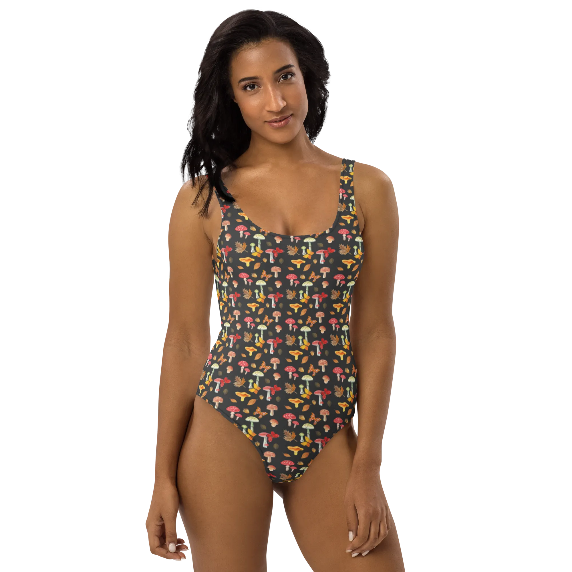 Funktionalität trifft bei diesem Badeanzug auf Liebe zur Natur – ob beim Schwimmen, Sonnenbaden oder am Strandspaziergang. Die Pilze und Schmetterlinge stehen für Vitalität und Freiheit, perfekt für die, die das Leben genießen!