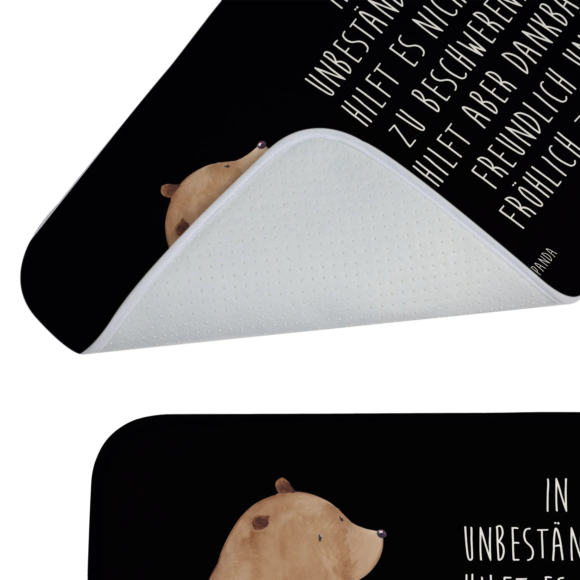 Gerade, wenn du auf der Suche nach einem einzigartigen Geschenk für Bärenliebhaber oder einen besonderen Menschen in deinem Leben bist, ist dieser Badvorleger die perfekte Wahl! Egal, ob es sich um einen Geburtstag, einen Einzug in eine neue Wohnung oder einfach nur als kleine Aufmerksamkeit handelt, mit diesem Badteppich zeigst du, dass dir etwas daran liegt, Freude zu schenken. Das Motiv zusammen mit dem lebensbejahenden Slogan "In einer unbeständigen Welt hilft es nicht, sich zu beschweren. Es hilft aber dankbar, freundlich und fröhlich zu sein." bietet nicht nur einen ästhetischen Genuss, sondern auch eine inspirierende Botschaft.
