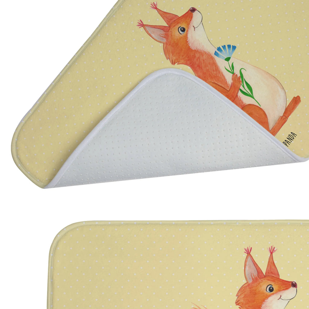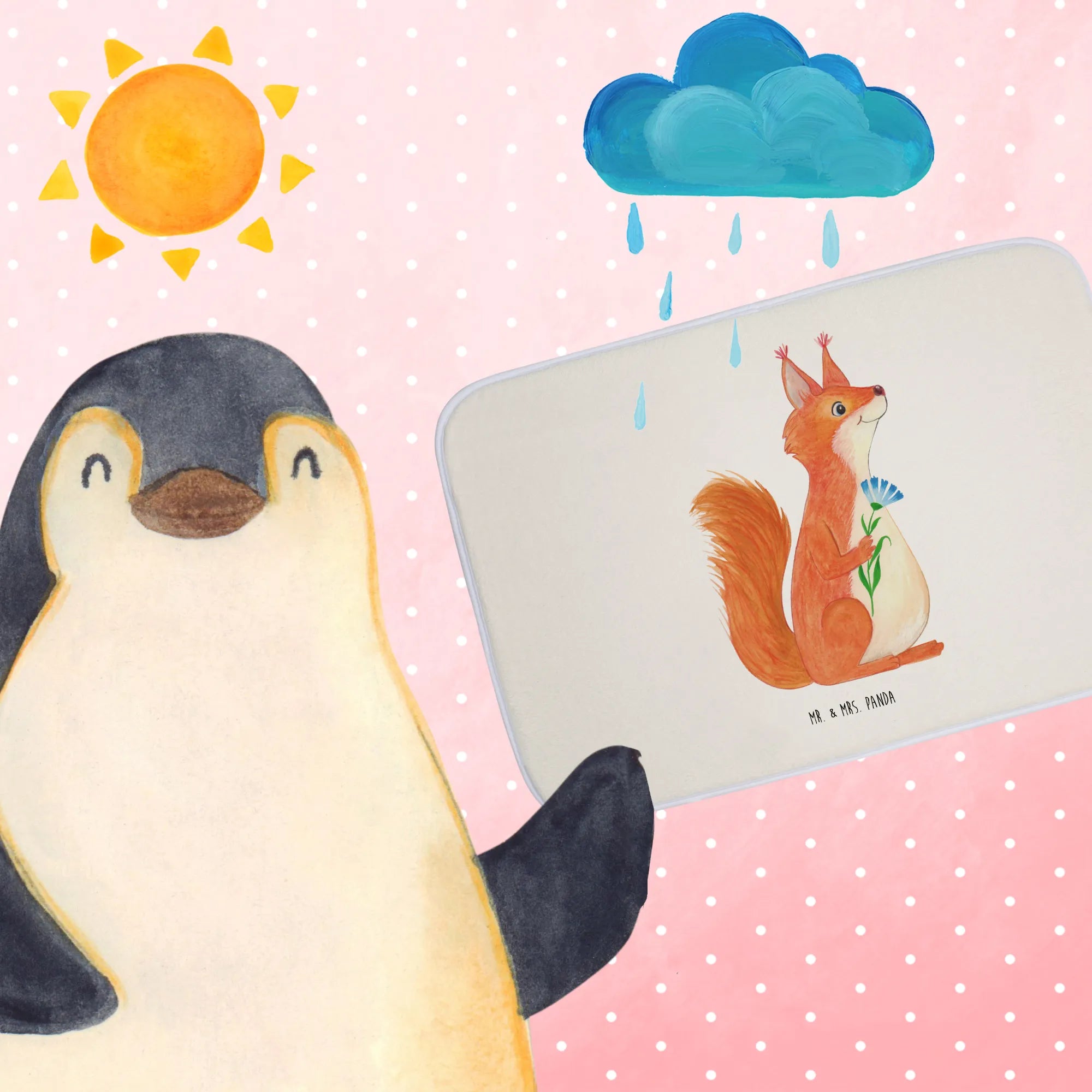 Mit seinem charmanten Design und der hochwertigen Verarbeitung wird der Badvorleger Eichhörnchen Blume von Mr. & Mrs. Panda sicher alle Herzen erobern und zum herzlichen Mittelpunkt in jedem Badezimmer werden. Überrasche deine Liebsten (oder dich selbst!) und bringe Freude in das tägliche Leben mit diesem einzigartigen Badteppich – denn jeder Tag beginnt besser mit einem Lächeln und einem flauschigen Untergrund unter den Füßen!