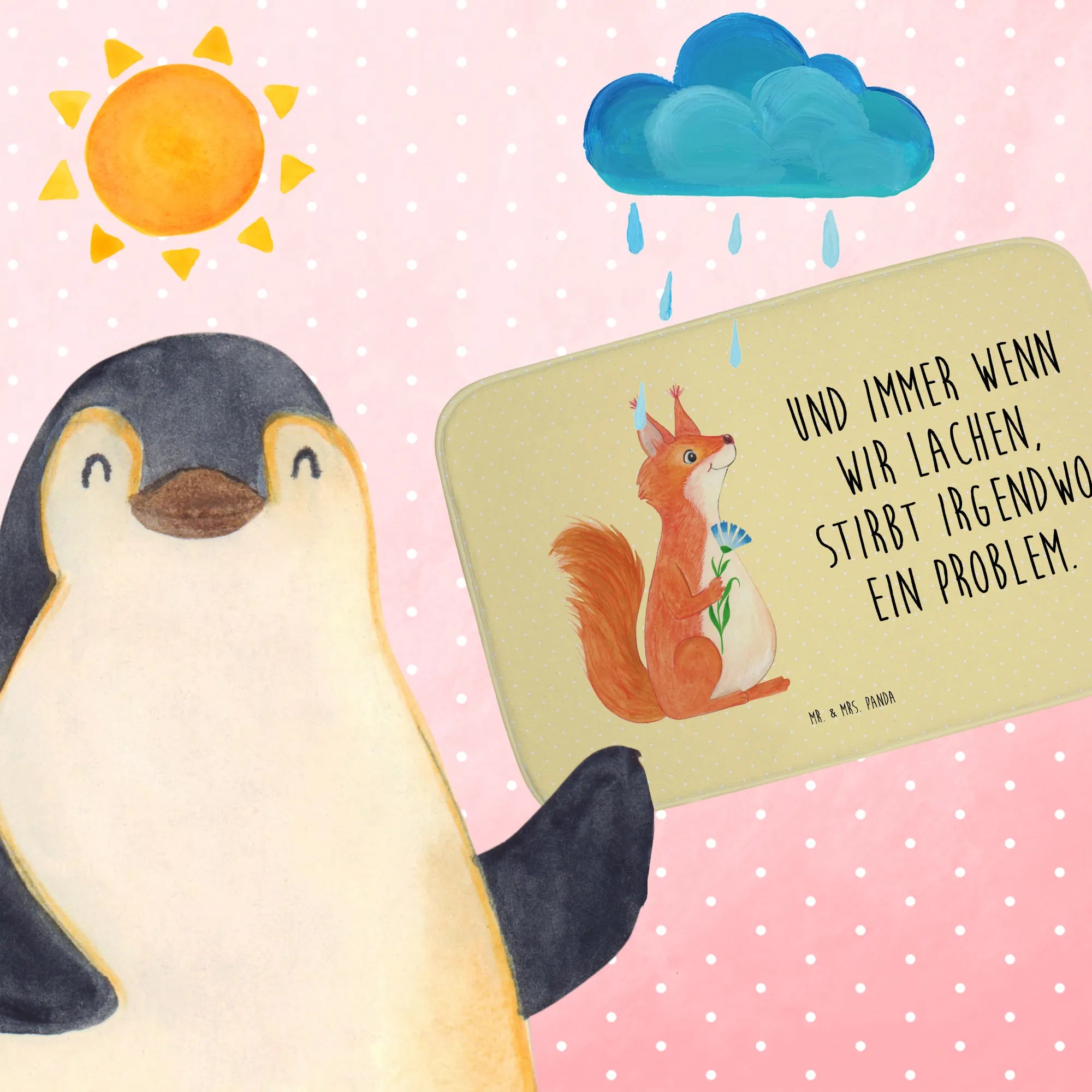 So bleibt dein Badteppich immer frisch und einladend! Außerdem ist der Badvorleger eine wunderbare Geschenkidee – sei es für einen Geburtstag, einen Einzug oder einfach nur, um jemandem eine Freude zu machen. Das niedliche Eichhörnchen zusammen mit dem fröhlichen Spruch "Und immer wenn wir lachen, stirbt irgendwo ein Problem" verbreitet positive Vibes und erinnert uns daran, die kleinen Dinge im Leben zu schätzen.