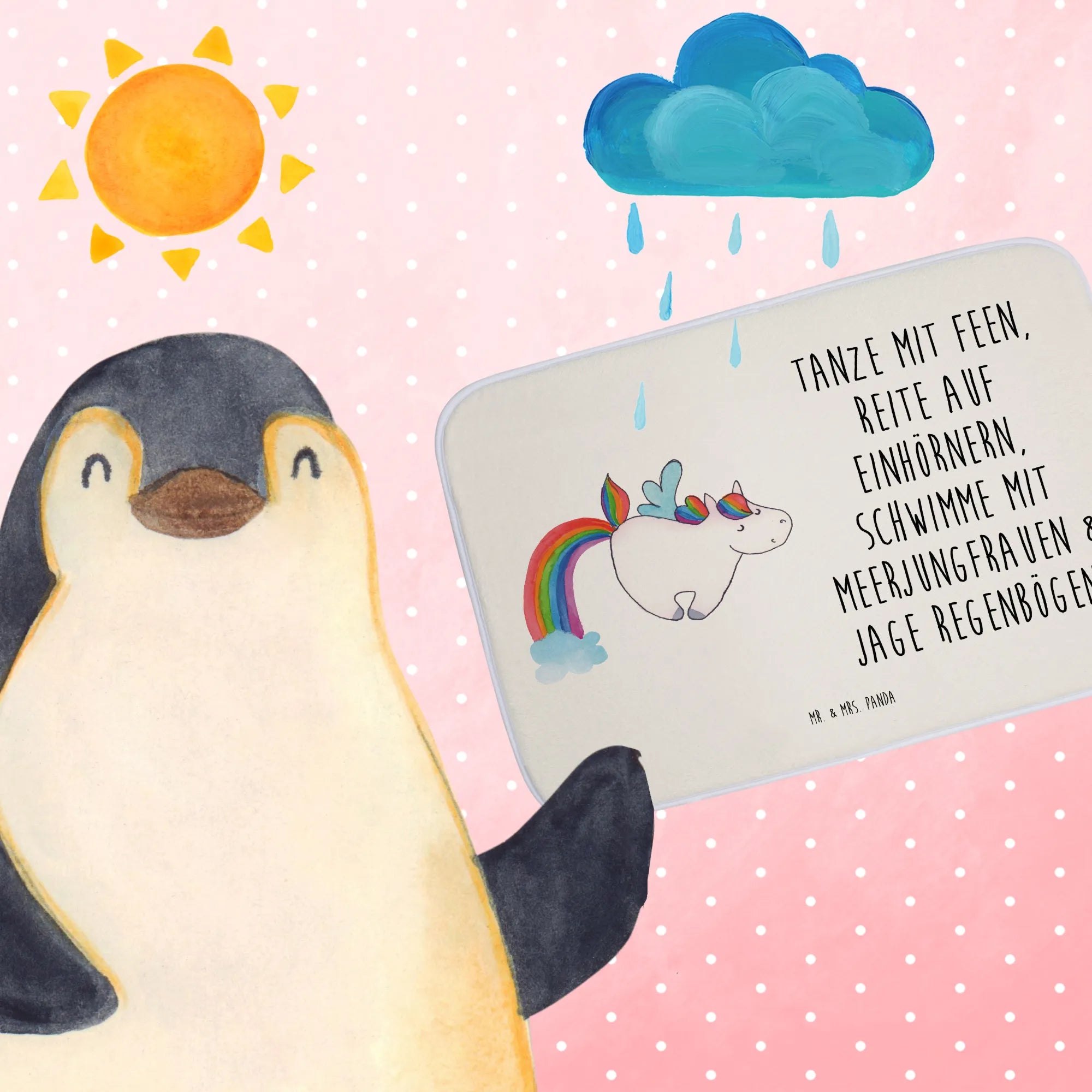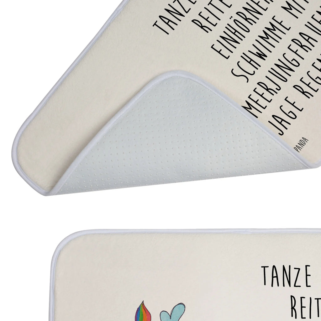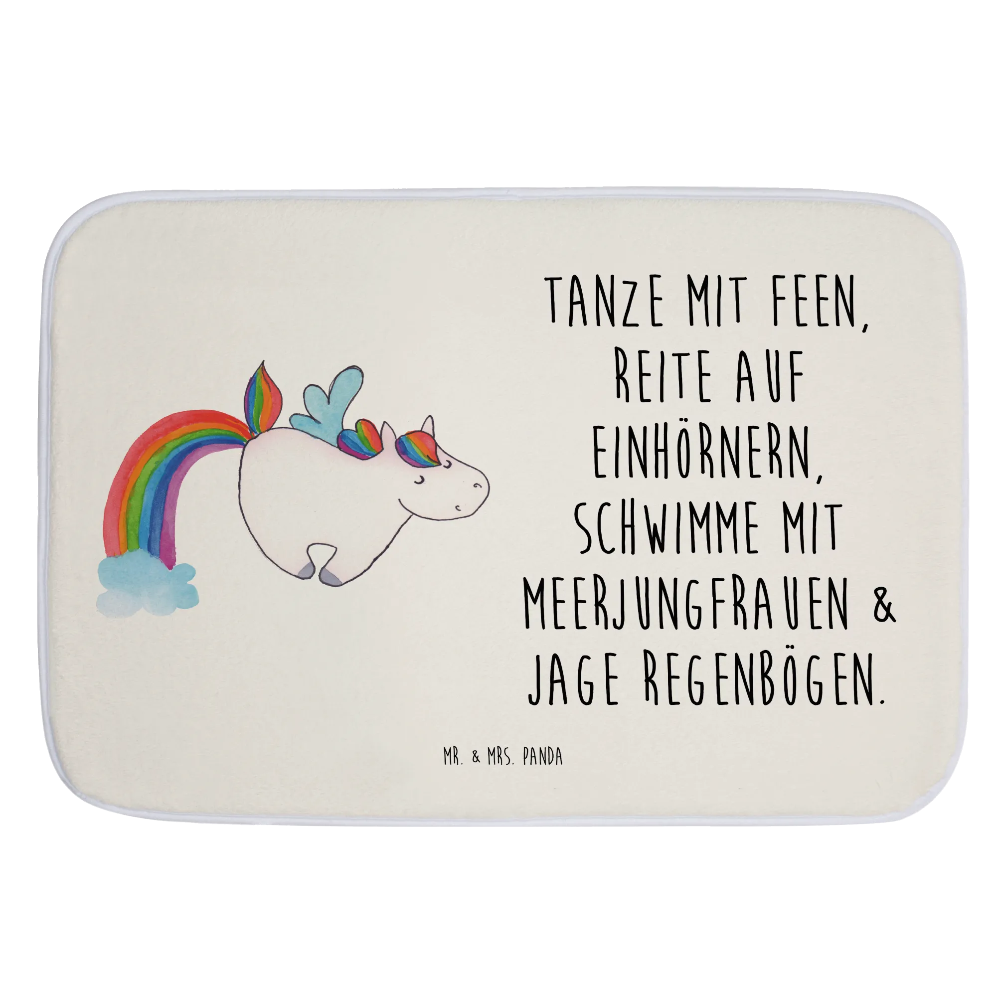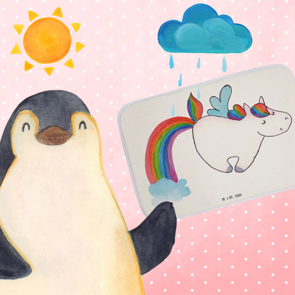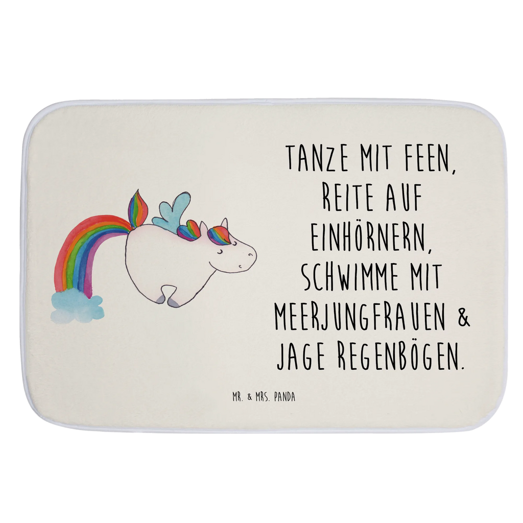 Entdecke den zauberhaften Badvorleger "Einhorn Fliegendes Pferd" aus der Einhorn-Kollektion von Mr. & Mrs. Panda! Dieser wunderschöne Badteppich bringt einen Hauch von Magie in dein Badezimmer und verwandelt jeden Schritt in ein kleines Abenteuer. Das fröhliche Einhorn, das durch die Lüfte fliegt, zeigt, dass die Fantasie oft viel schönere Möglichkeiten bietet als die Realität. Wer möchte schon im Regen stehen bleiben, wenn man stattdessen mit Meerjungfrauen schwimmen und auf Einhörnern reiten kann?