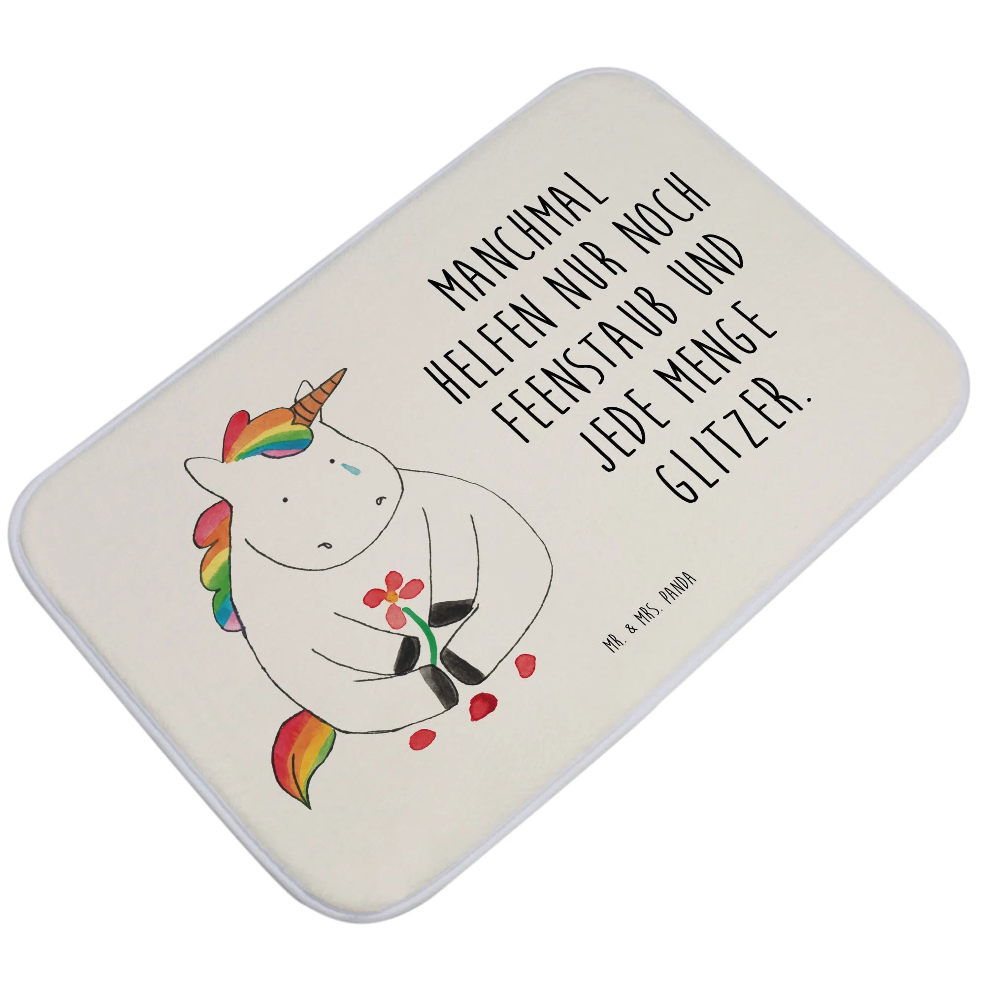 Entdecke das perfekte Geschenk für Einhorn-Liebhaber mit unserem traumhaften Badvorleger "Einhorn Traurig" aus der zauberhaften Einhorn-Kollektion von Mr. & Mrs. Panda. Dieser Badteppich ist nicht nur ein hübsches Dekorationsstück, sondern auch ein wahrer Schatz für dein Badezimmer!