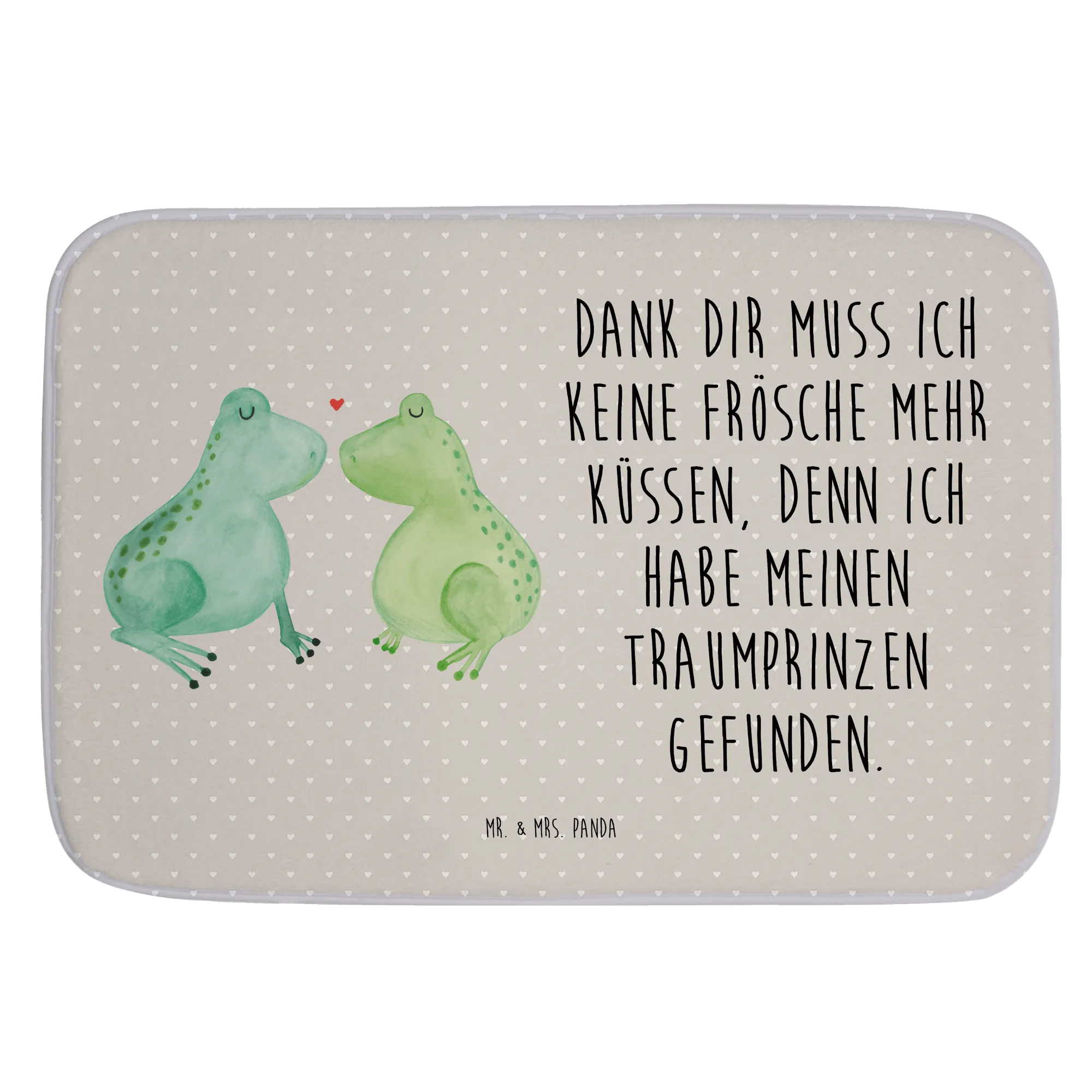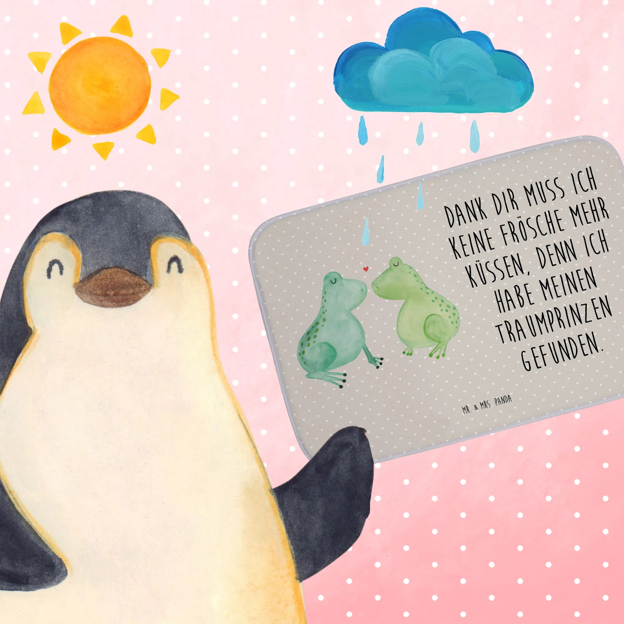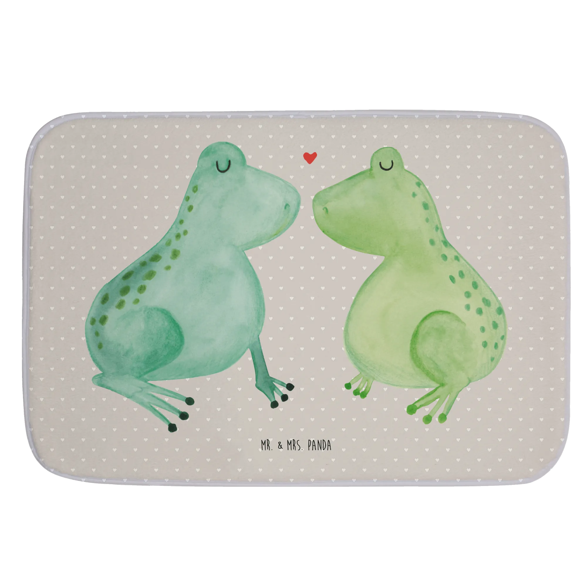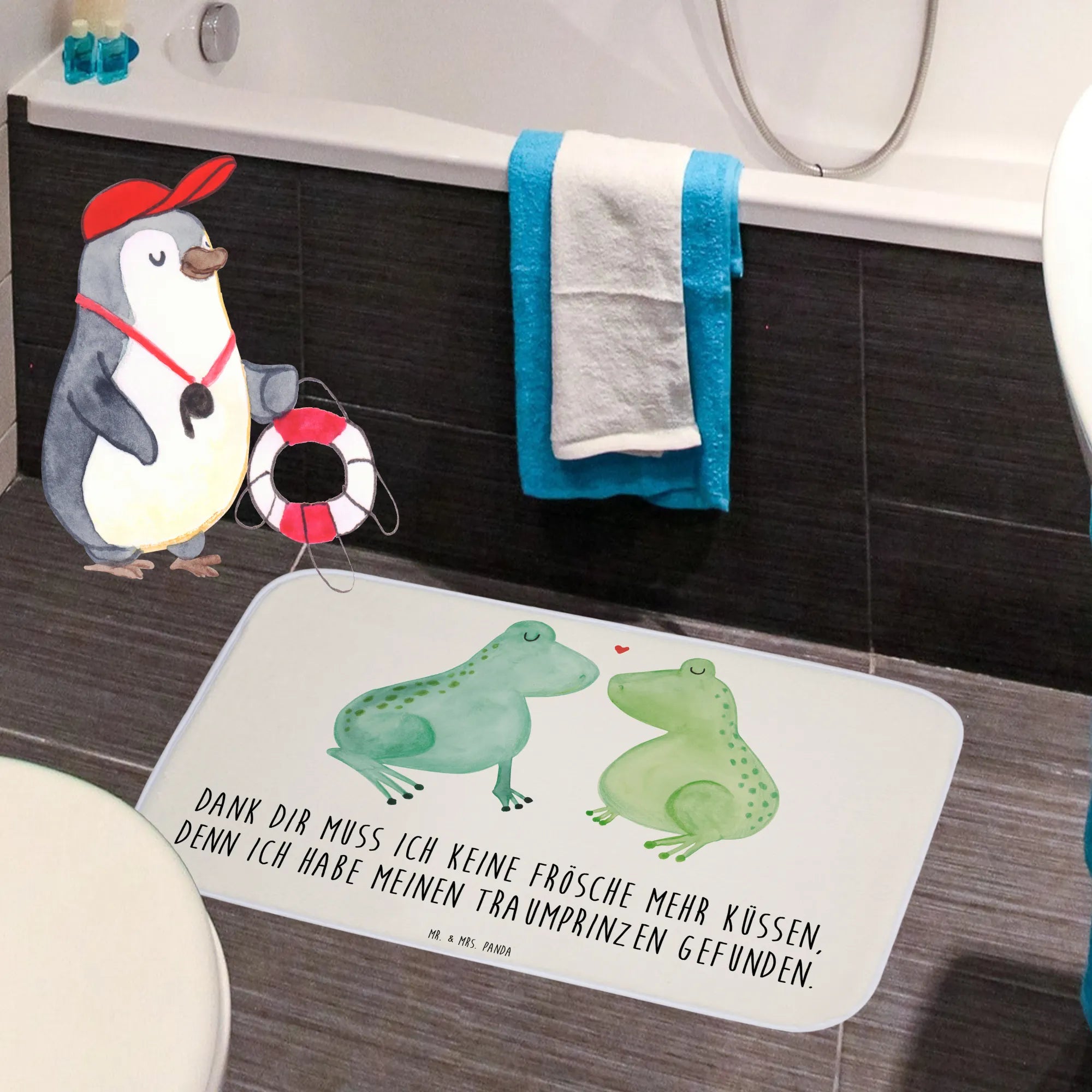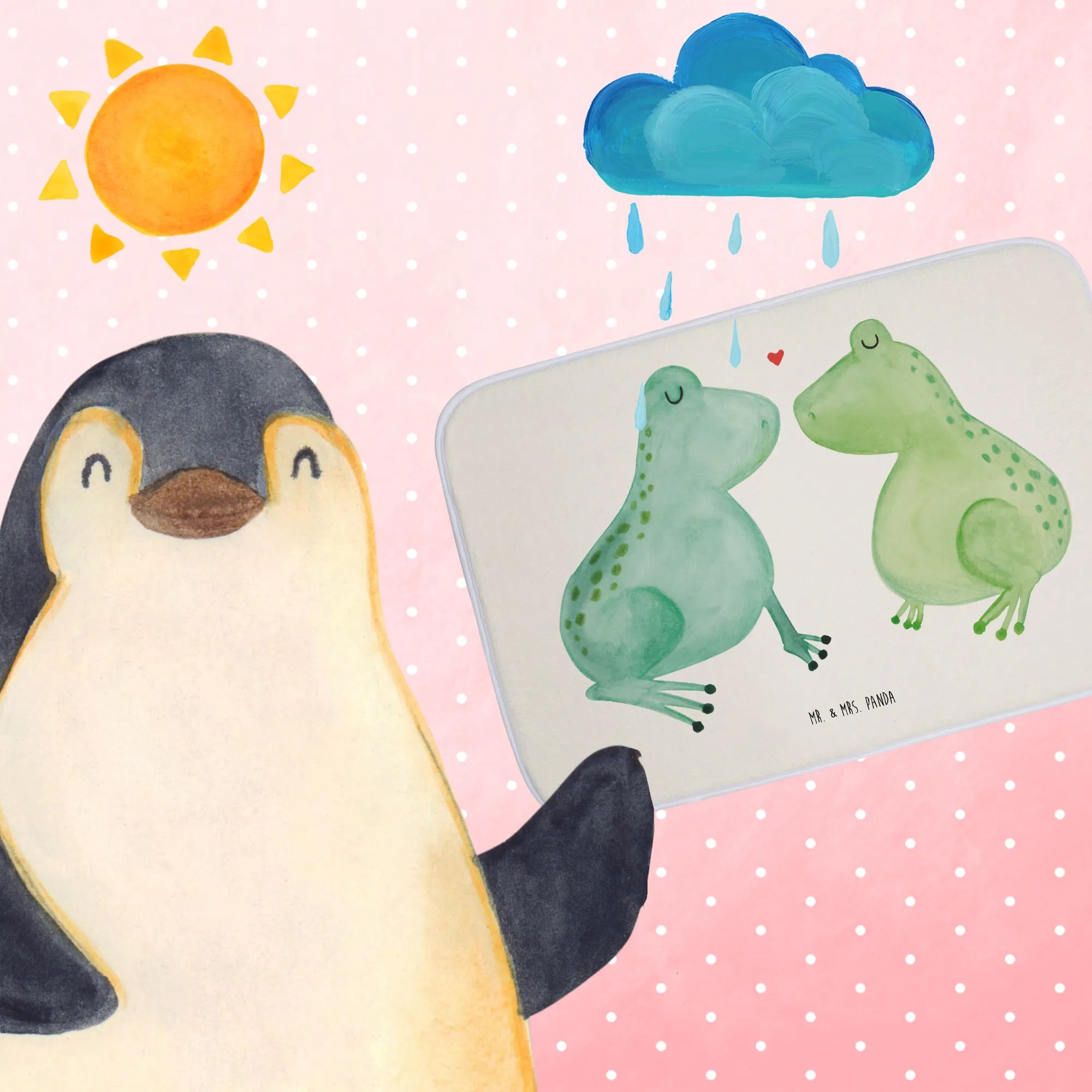 Der Badvorleger "Frosch Liebe" von Mr. & Mrs. Panda ist die perfekte Ergänzung für jedes Badezimmer und ein ideales Geschenk für Verliebte! Mit seinem niedlichen Motiv von zwei verliebten Fröschen, die ein rotes Herz zwischen sich halten, vermittelt diese Badematte eine wunderbare Botschaft der Liebe und Zuneigung.