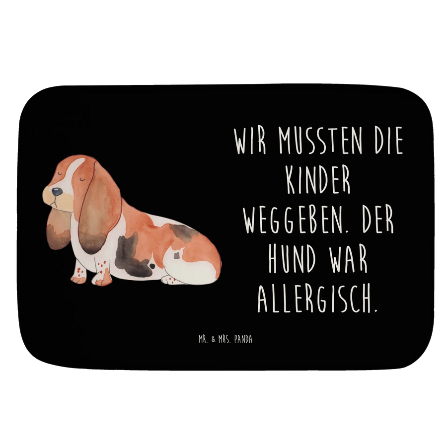 Ein wunderschöner Badvorleger von Mr. & Mrs. Panda, der nicht nur deine Füße verwöhnt, sondern auch dein Badezimmer zum Strahlen bringt! Mit dem niedlichen Motiv des Basset Hounds und dem liebevollen Slogan 'Wir mussten die Kinder weggeben. Der Hund war allergisch.' sorgt dieser Badteppich für ein Lächeln bei jedem Schritt.