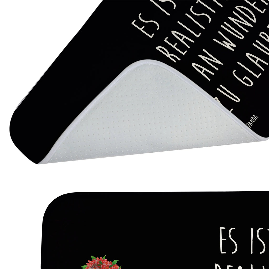Der Badvorleger mit dem niedlichen Meerschweinchen-Motiv aus der Small World Kollektion von Mr. & Mrs. Panda ist nicht nur ein wunderschönes Accessoire, sondern auch ein praktischer Begleiter für dein Badezimmer. Mit einem Maß von 590 mm x 400 mm passt dieser flauschige Badteppich perfekt vor die Dusche oder Badewanne und gibt deinem Badezimmer eine fröhliche Note. Die Liebe zum Detail zeigt sich nicht nur in dem bezaubernden Tiermotiv, sondern auch in dem dazugehörigen Spruch: „Es ist wohl realistisch, an Wunder zu glauben…“. Dieser Spruch regt zum Nachdenken an und bringt eine positive Stimmung in deinen Alltag.