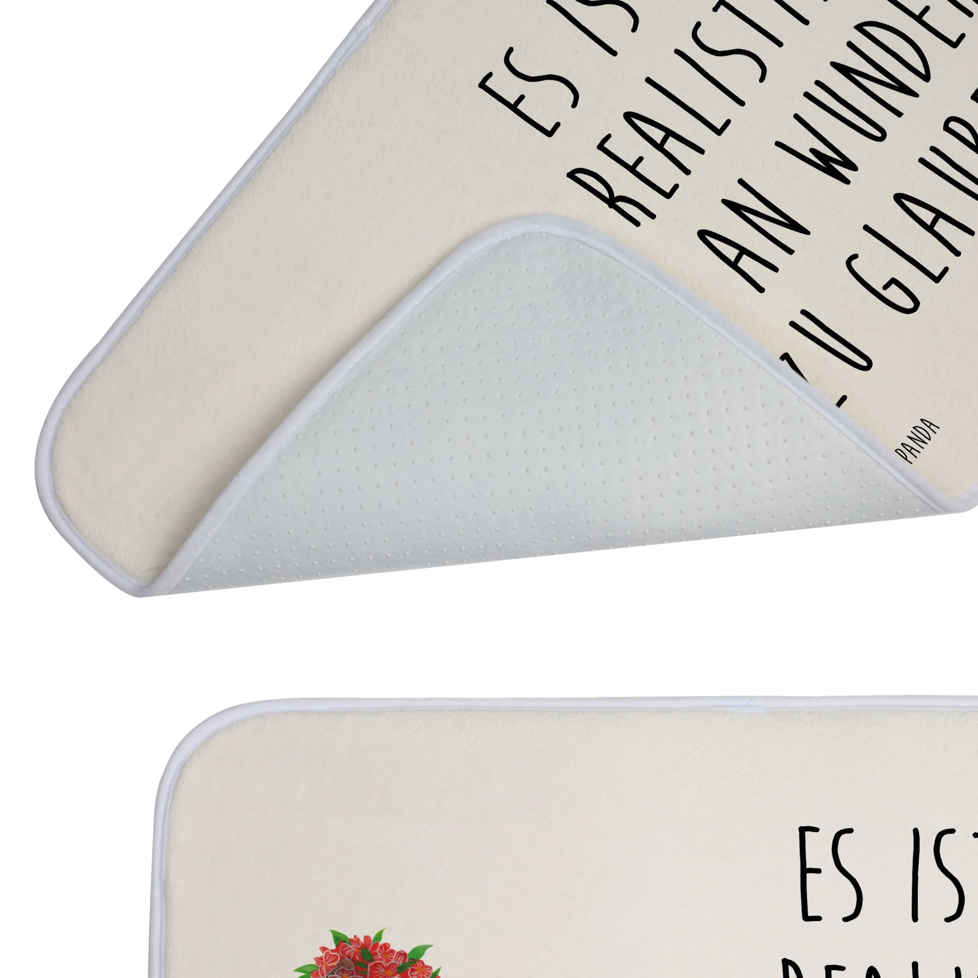 Entdecke unseren Badvorleger mit dem zauberhaften Meerschweinchen-Motiv aus der Small World Kollektion von Mr. & Mrs. Panda! Dieser wunderschöne Badvorleger ist nicht nur ein echter Hingucker in deinem Badezimmer, sondern bringt auch Freude und gute Laune in jeden Tag. Mit einem besonderen Spruch, der besagt: 'Es ist wohl realistisch, an Wunder zu glauben...', ermutigt dich der Badvorleger dazu, an die kleinen Wunder im Leben zu denken.