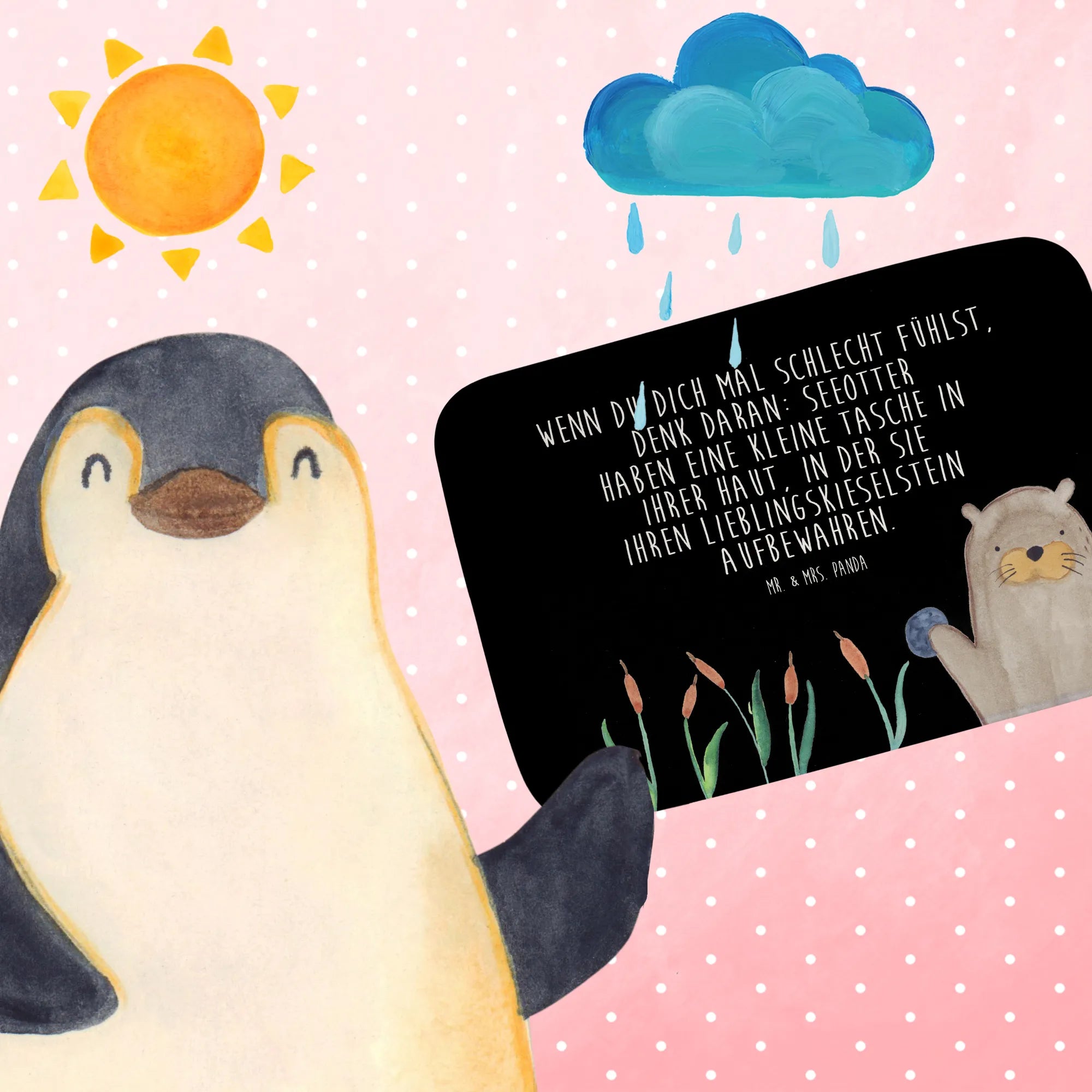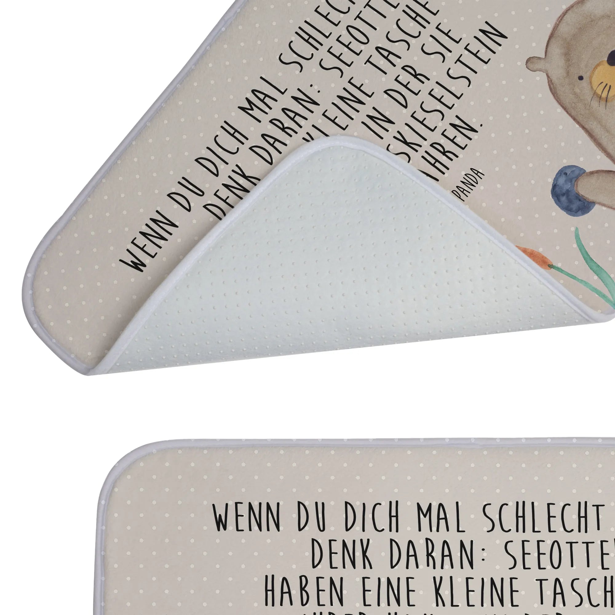 Der Slogan "Wenn du dich mal schlecht fühlst, denk daran: Seeotter haben eine kleine Tasche in ihrer Haut, in der sie ihren Lieblingskieselstein aufbewahren" bringt zusätzlich eine bedeutungsvolle Botschaft, die für viele von uns sehr tröstlich sein kann. Egal ob als Geschenk zum Geburtstag, zu Weihnachten oder einfach als kleine Aufmerksamkeit für dich selbst – dieser Badvorleger sorgt einfach immer für gute Laune.
