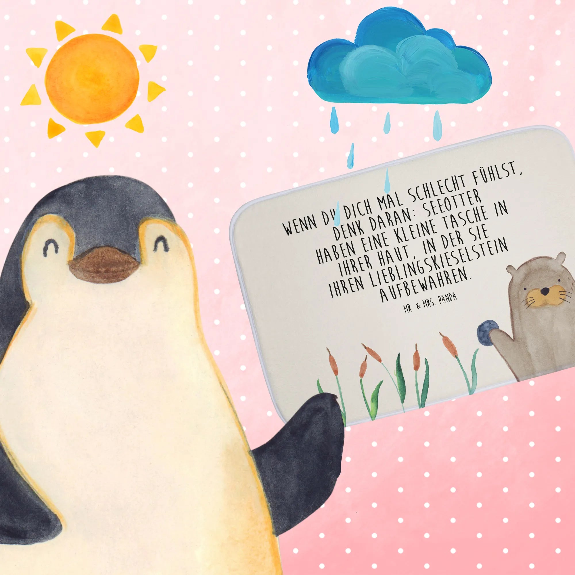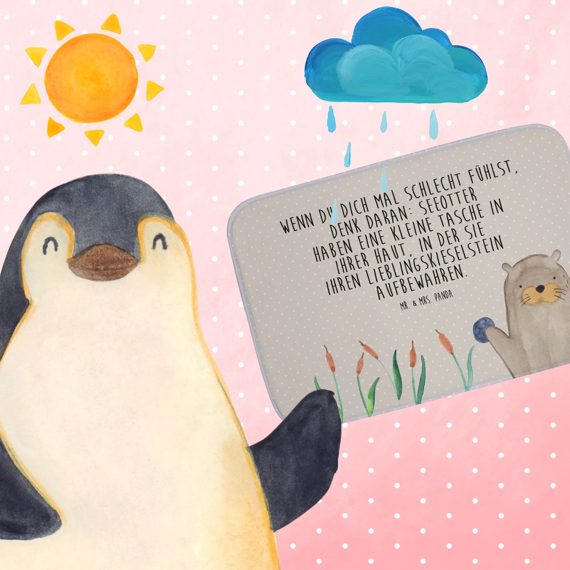Ideal als Geschenk zum Geburtstag, zu Weihnachten oder einfach als kleine Aufmerksamkeit, der Badvorleger "Otter mit Stein" wird jeden erfreuen. Perfekt für Otter-Fans, ist diese Badezimmermatte nicht nur ein Gebrauchsgegenstand, sondern auch ein schöner Erinnerungsstück, das an glückliche Momente erinnert. Denk daran: "Wenn du dich mal schlecht fühlst, denk daran: Seeotter haben eine kleine Tasche in ihrer Haut, in der sie ihren Lieblingskieselstein aufbewahren."