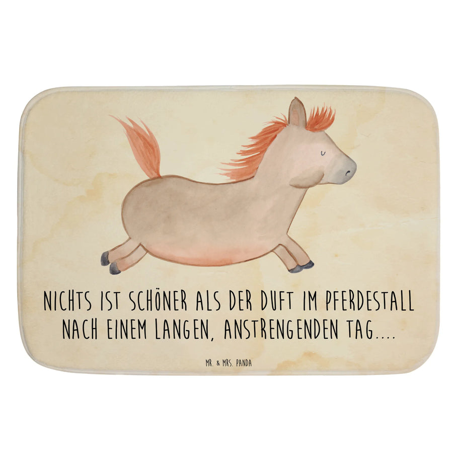 Ein wunderschöner Badvorleger von Mr. & Mrs. Panda, perfekt für alle Pferdeliebhaber und Pferdebesitzer. Sein flauschiges Design und das süße Motiv eines springenden Pferdes bringen den Charme eines Bauernhofes direkt in dein Badezimmer!