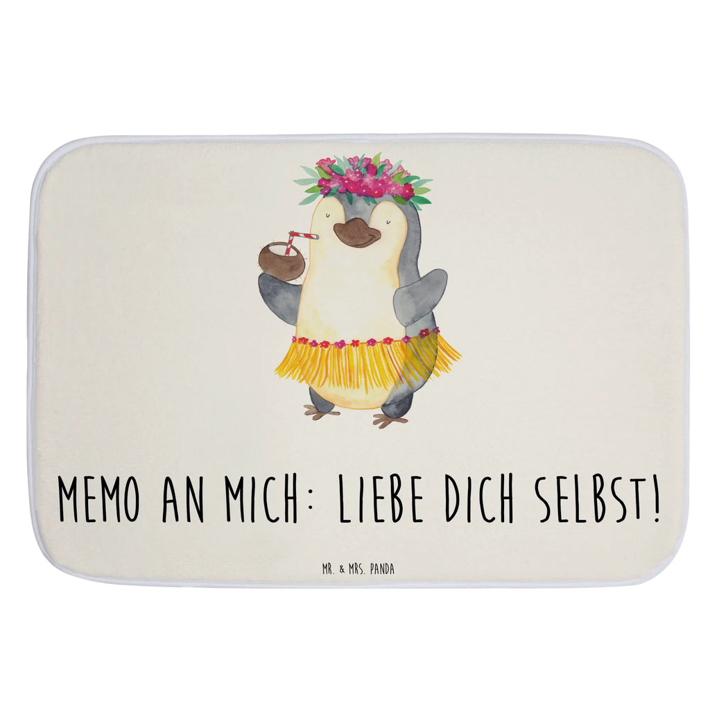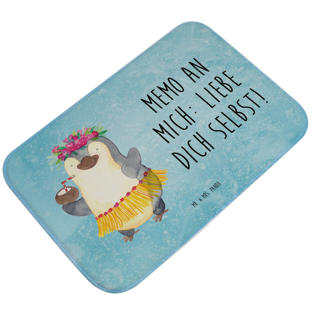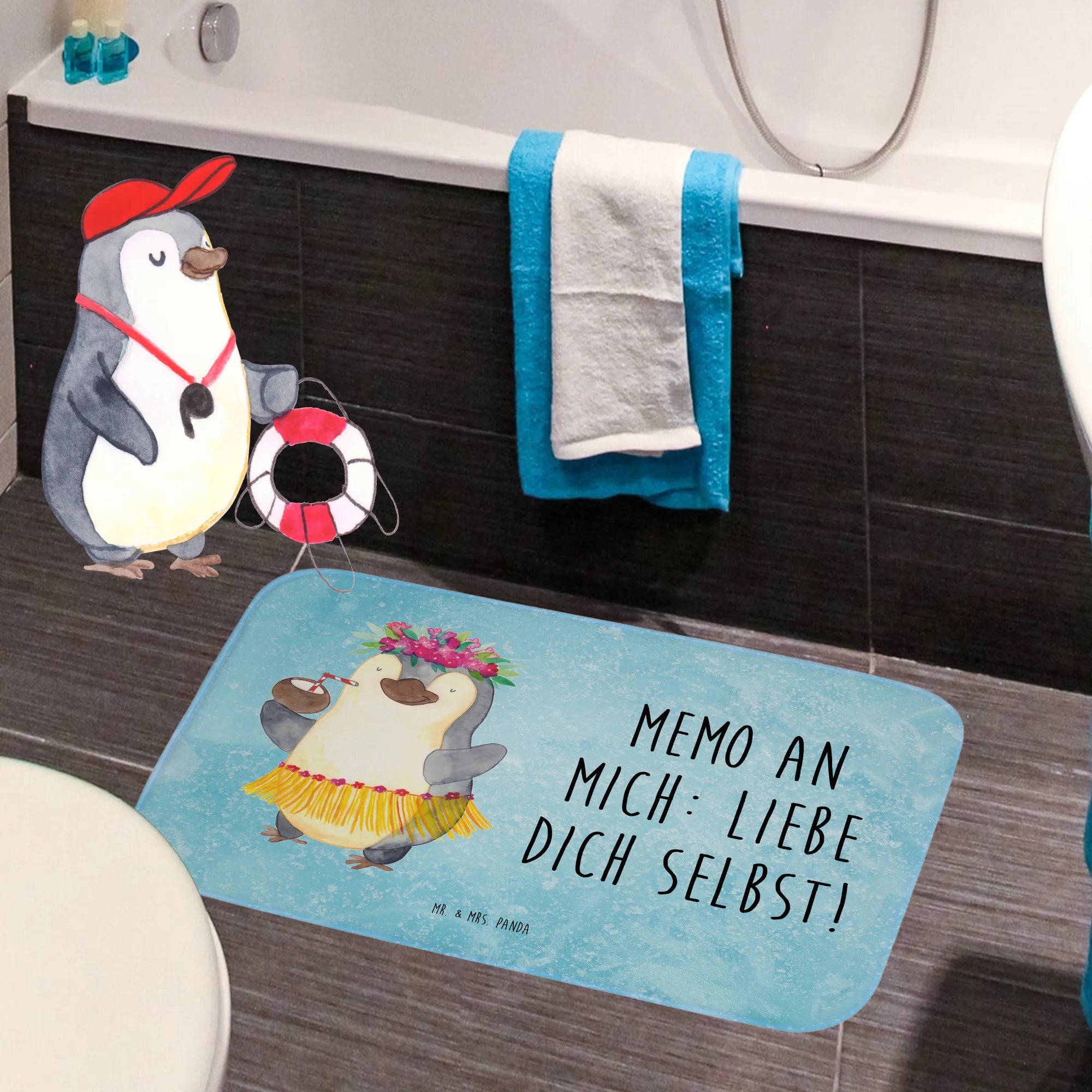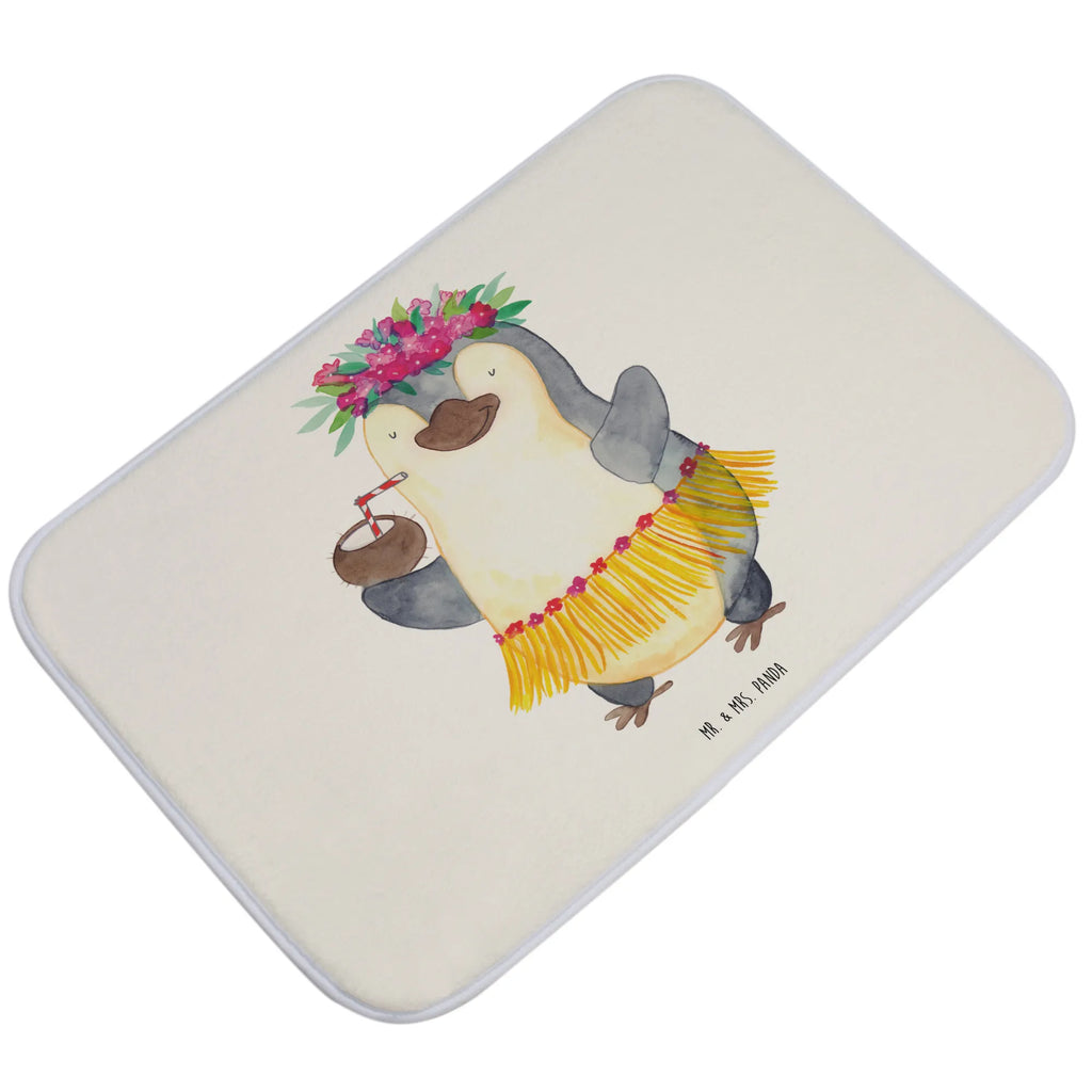 Nimm einen Hauch von Urlaub und gute Laune mit in dein Badezimmer! Der Badvorleger mit dem fröhlichen Pinguin Kokosnuss-Motiv aus der Pinguin-Kollektion von Mr. & Mrs. Panda ist der perfekte Begleiter für entspannende Momente nach dem Duschen oder Baden.