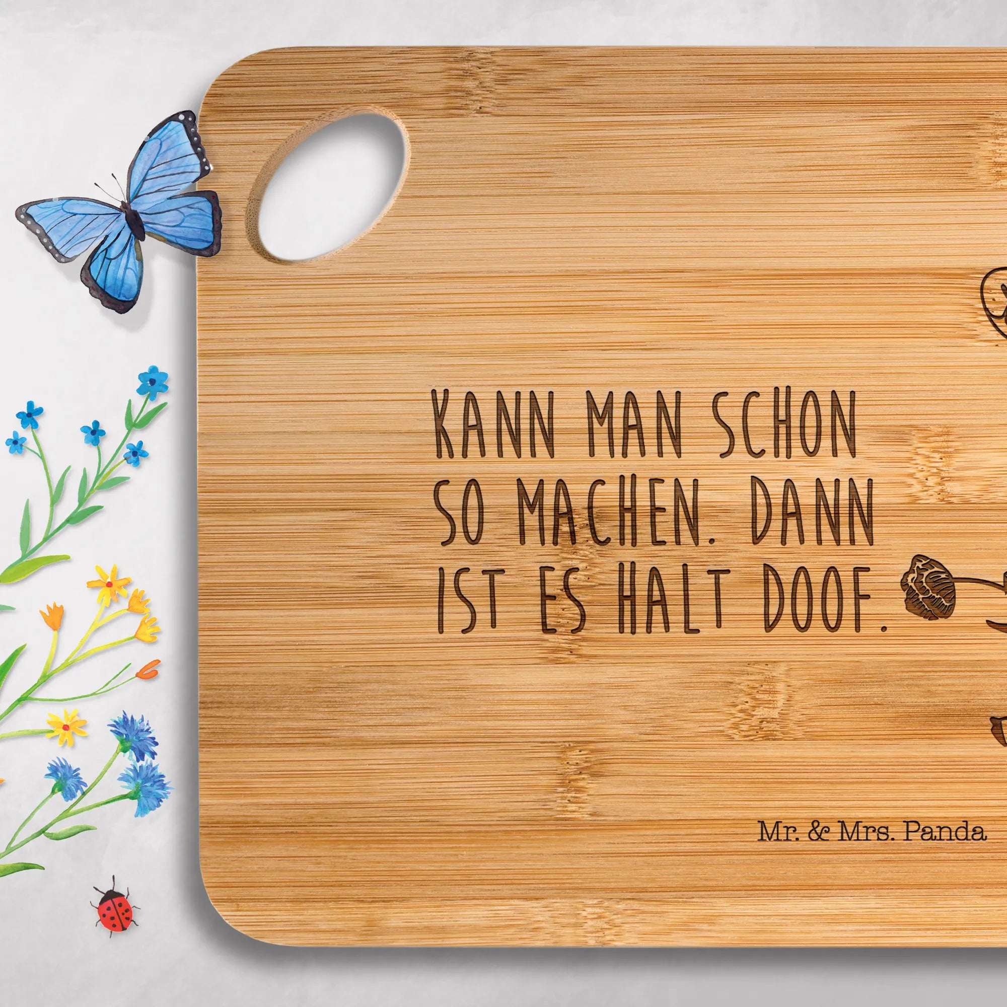 Gönn dir das bezaubernde Holzbrett von Mr. & Mrs. Panda – praktisch, robust und mit liebevoller Gravur!