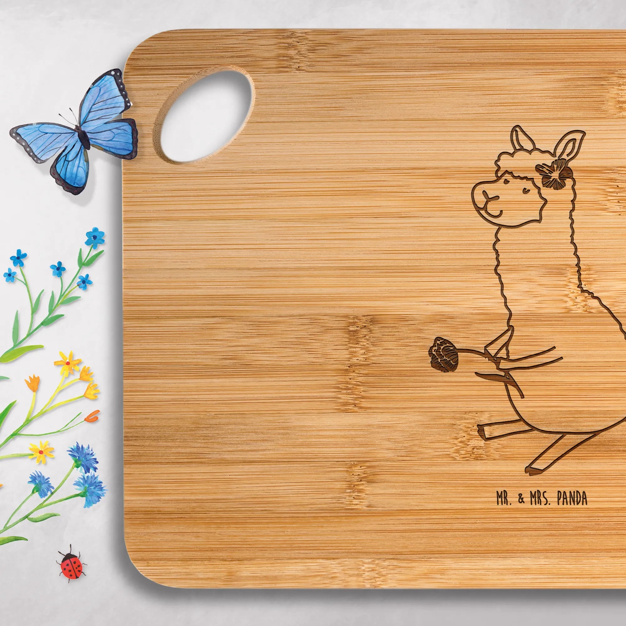 Schneidebrett Alpaka Blume - mit Spruch