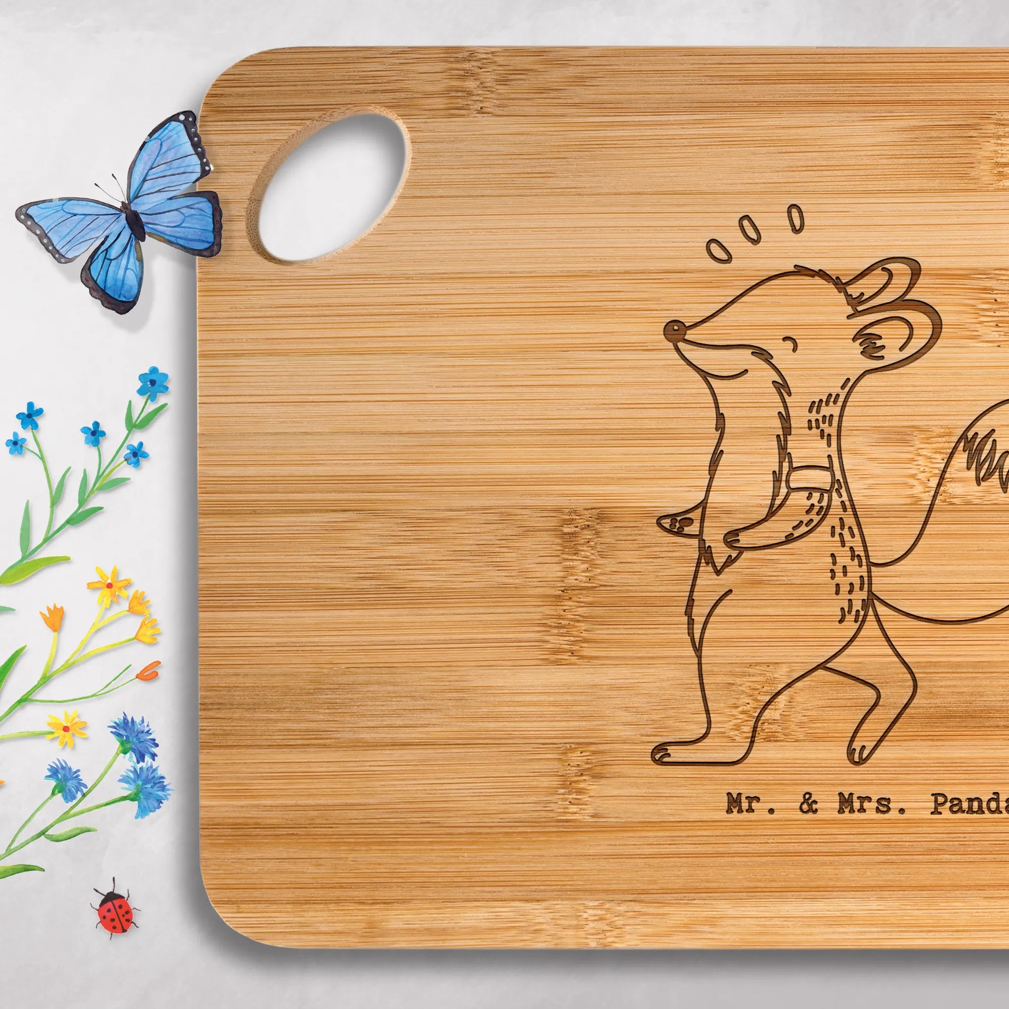 Gönn dir das bezaubernde Holzbrett von Mr. & Mrs. Panda – praktisch, robust und mit liebevoller Gravur!