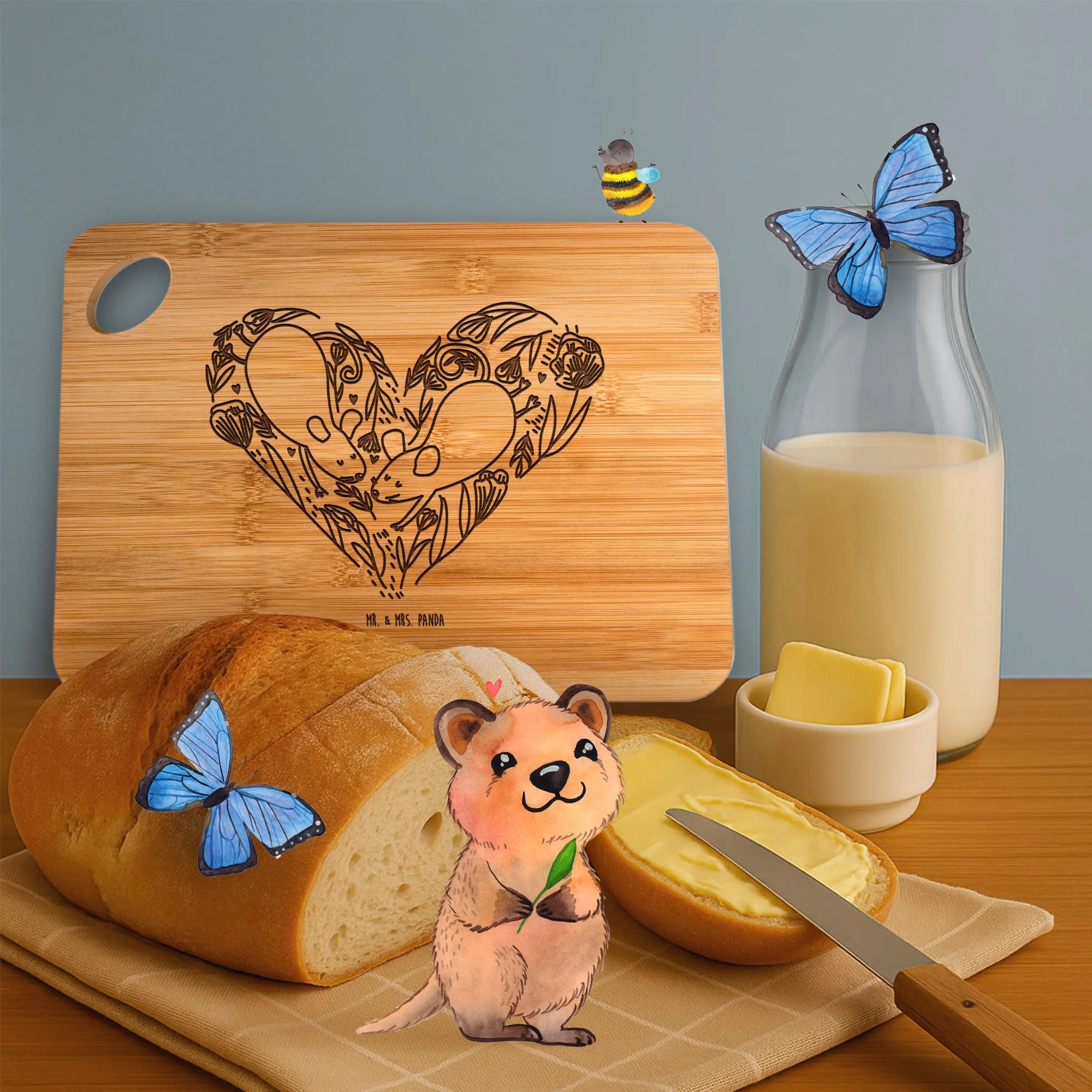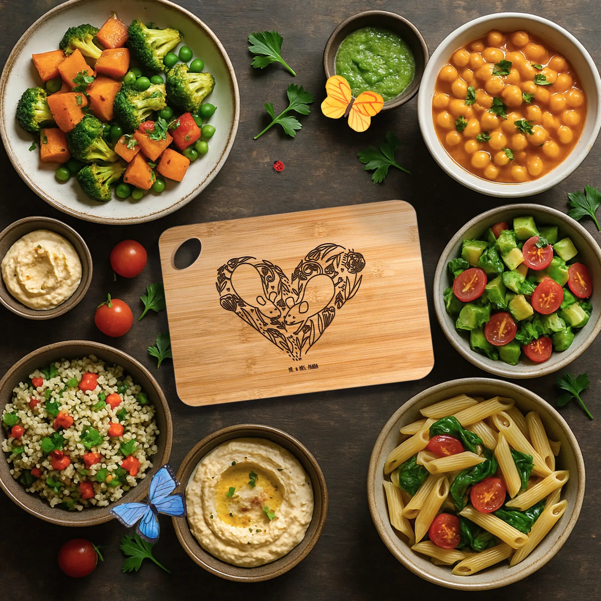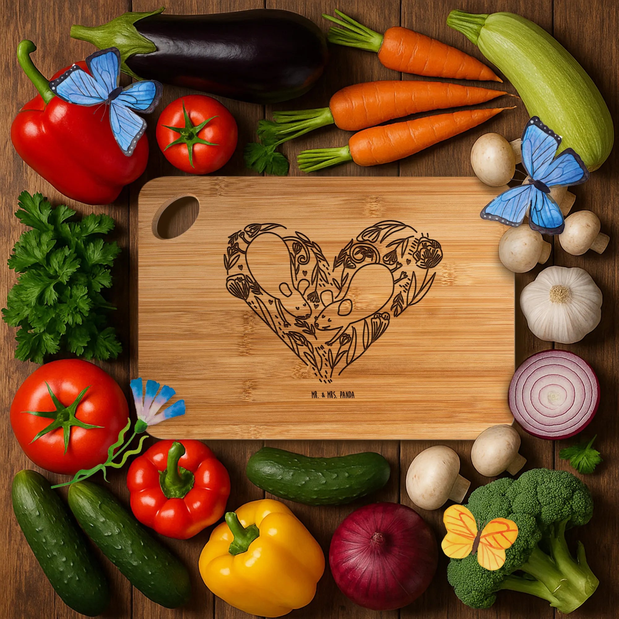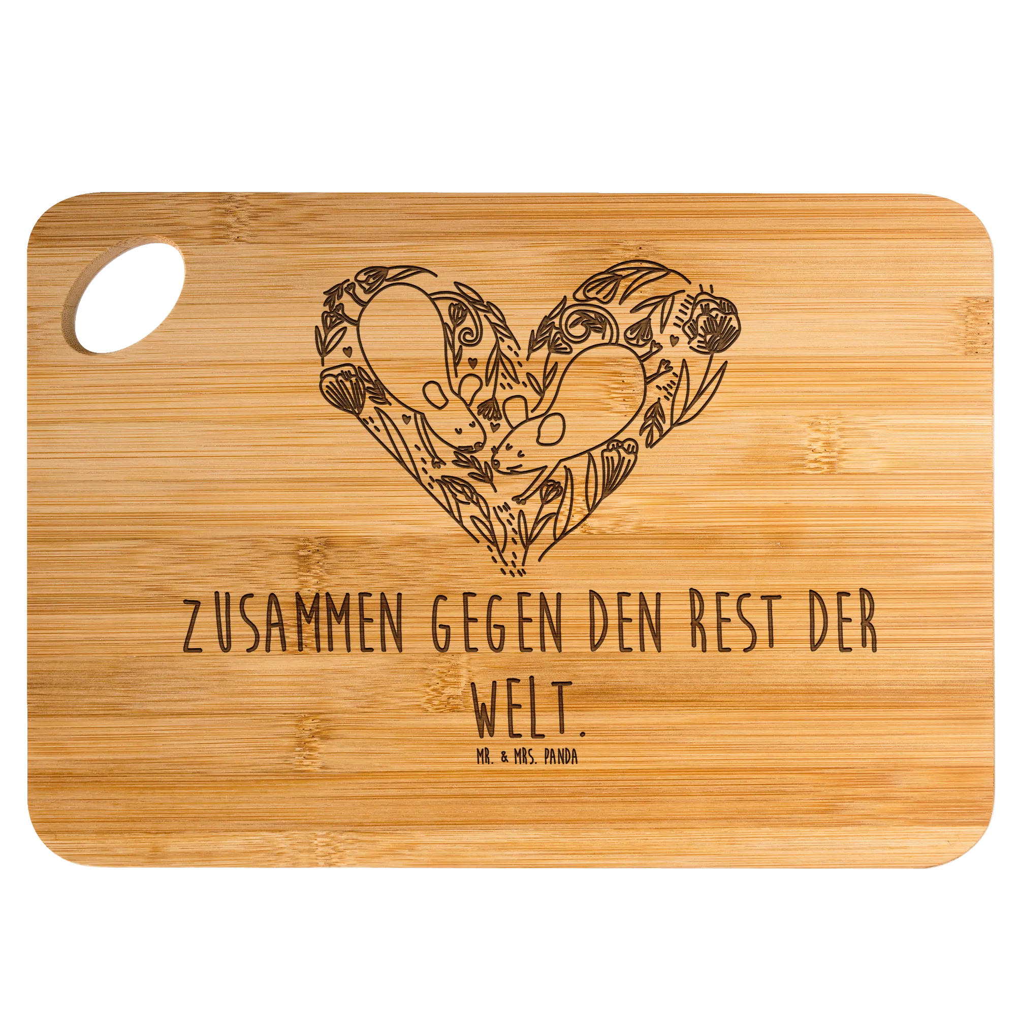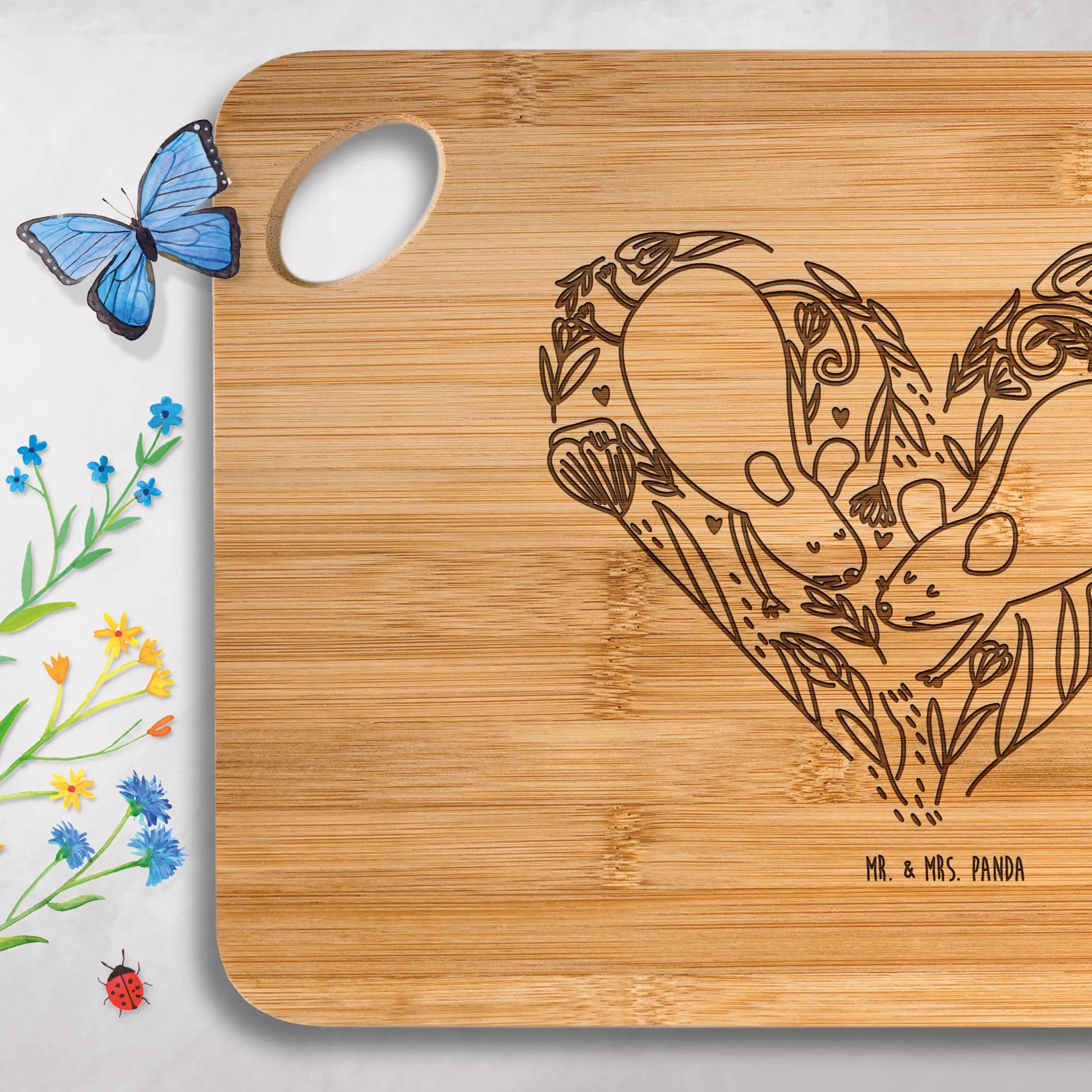 Gönn dir das bezaubernde Holzbrett von Mr. & Mrs. Panda – praktisch, robust und mit liebevoller Gravur!