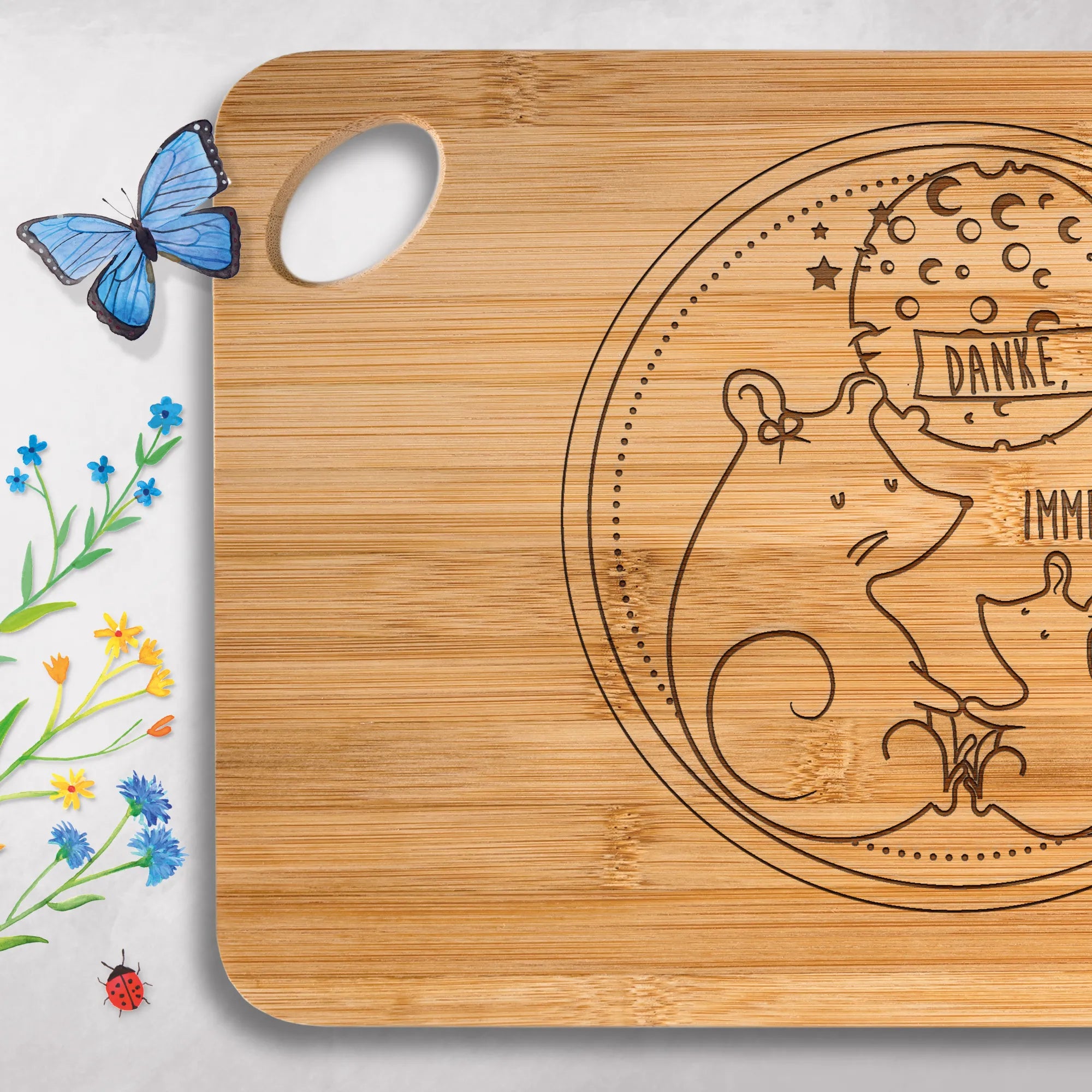 🐼 Praktisches Küchenbrett mit dauerhafter Lasergravur, ideal für Alltag.