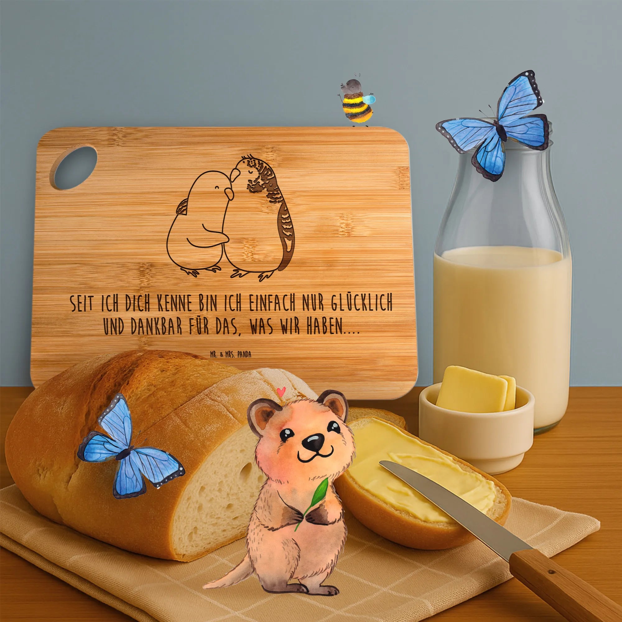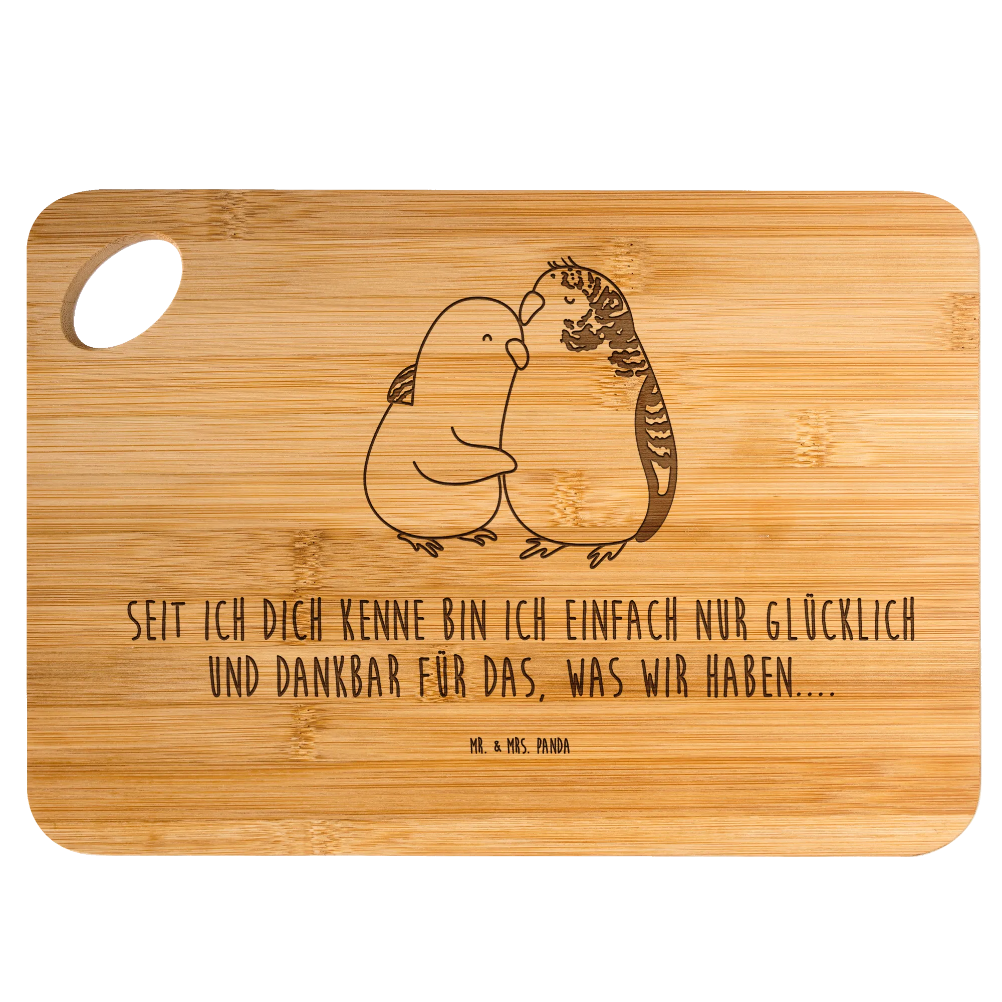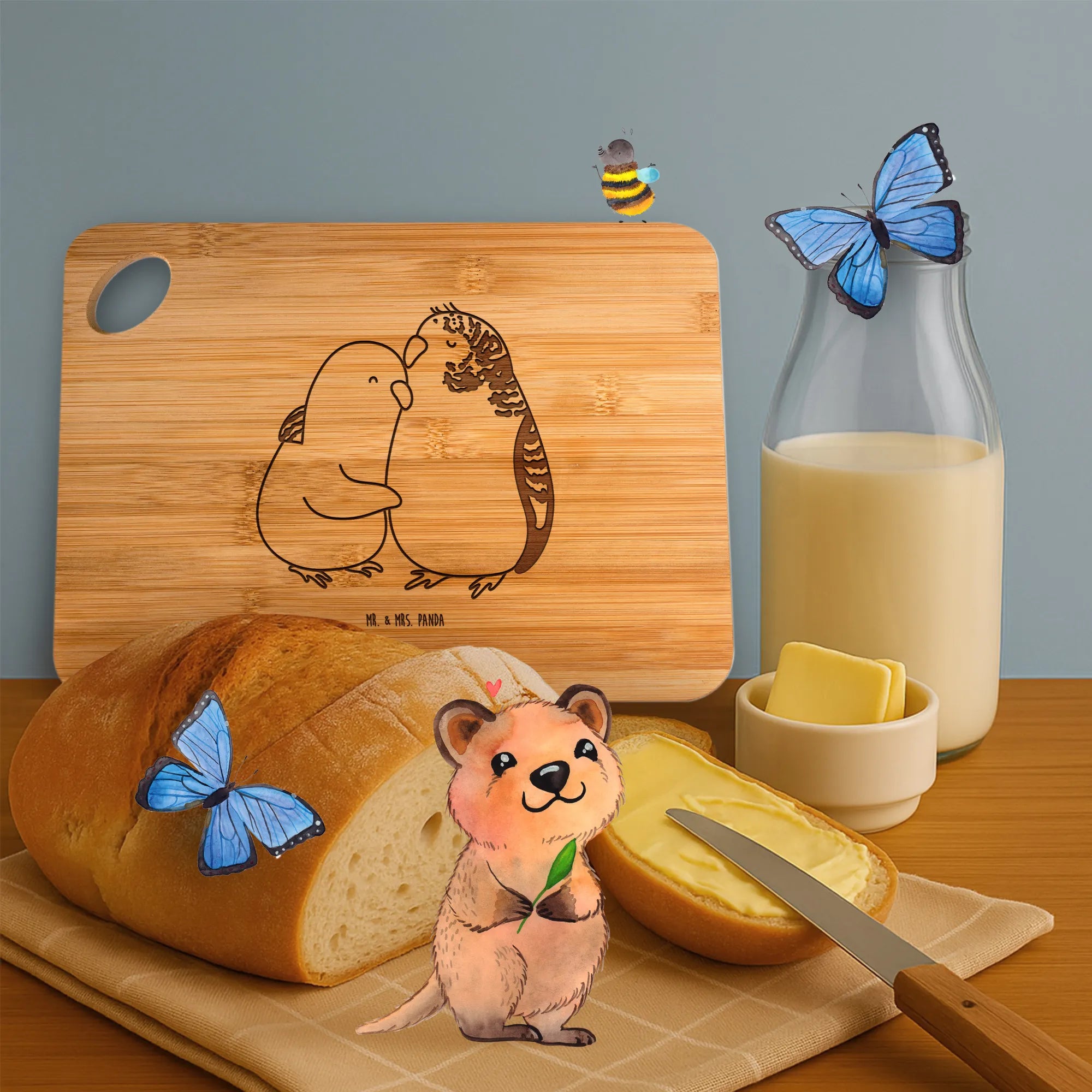 Bambus - Schneidebrett Wellensittich Liebe - mit Spruch