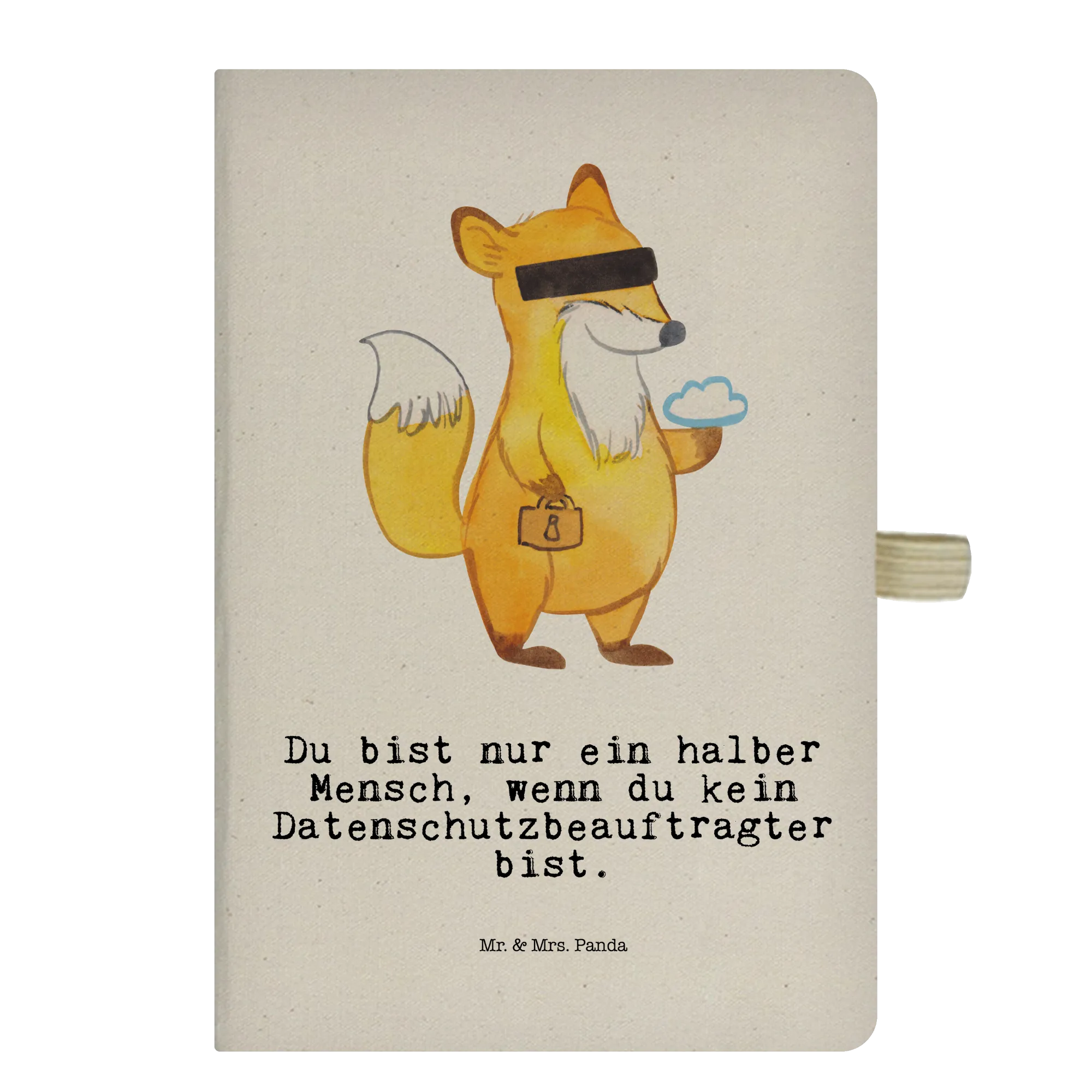 Mr. & Mrs. Panda präsentiert: Das DIN A5 Baumwoll Notizbuch „Datenschutzbeauftragter mit Herz“ – ein liebevolles Geschenk für alle, die Datenschutz nicht nur machen, sondern leben. 🦊✨