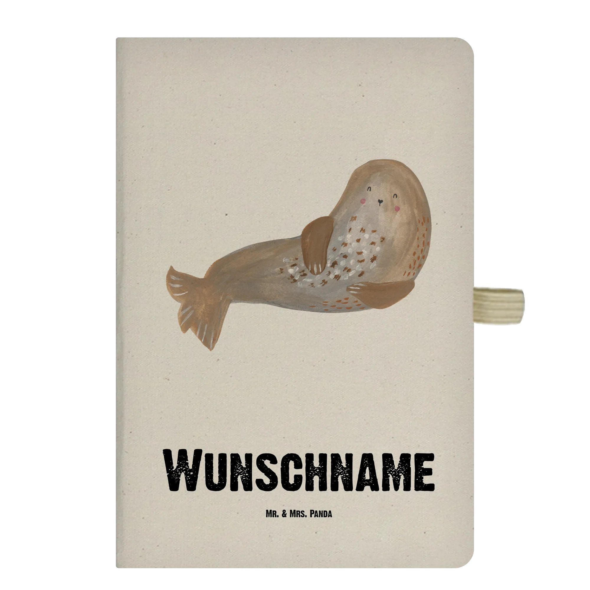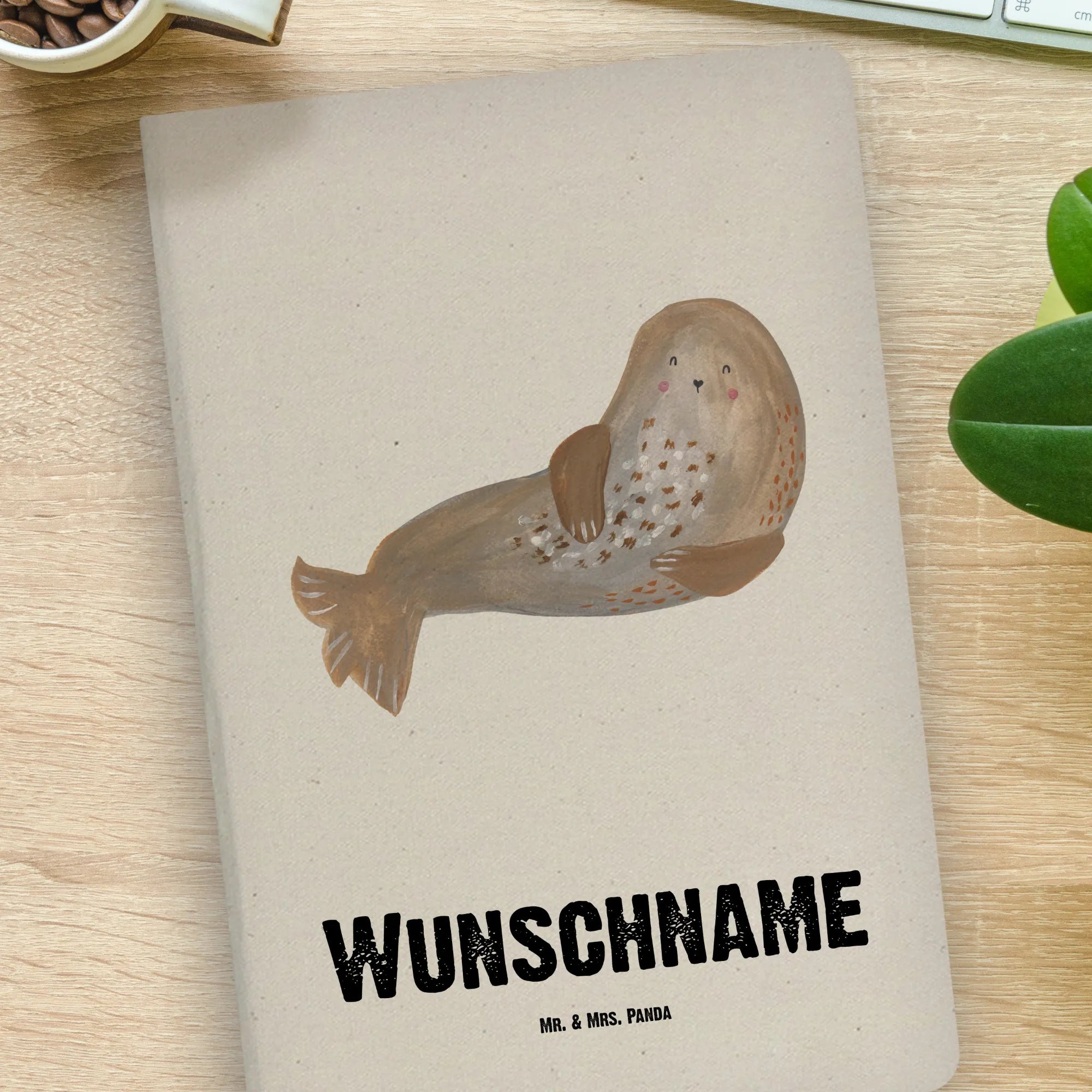 DIN A4 Personalisiertes Notizbuch Robbe lachend – Mr. & Mrs. Panda