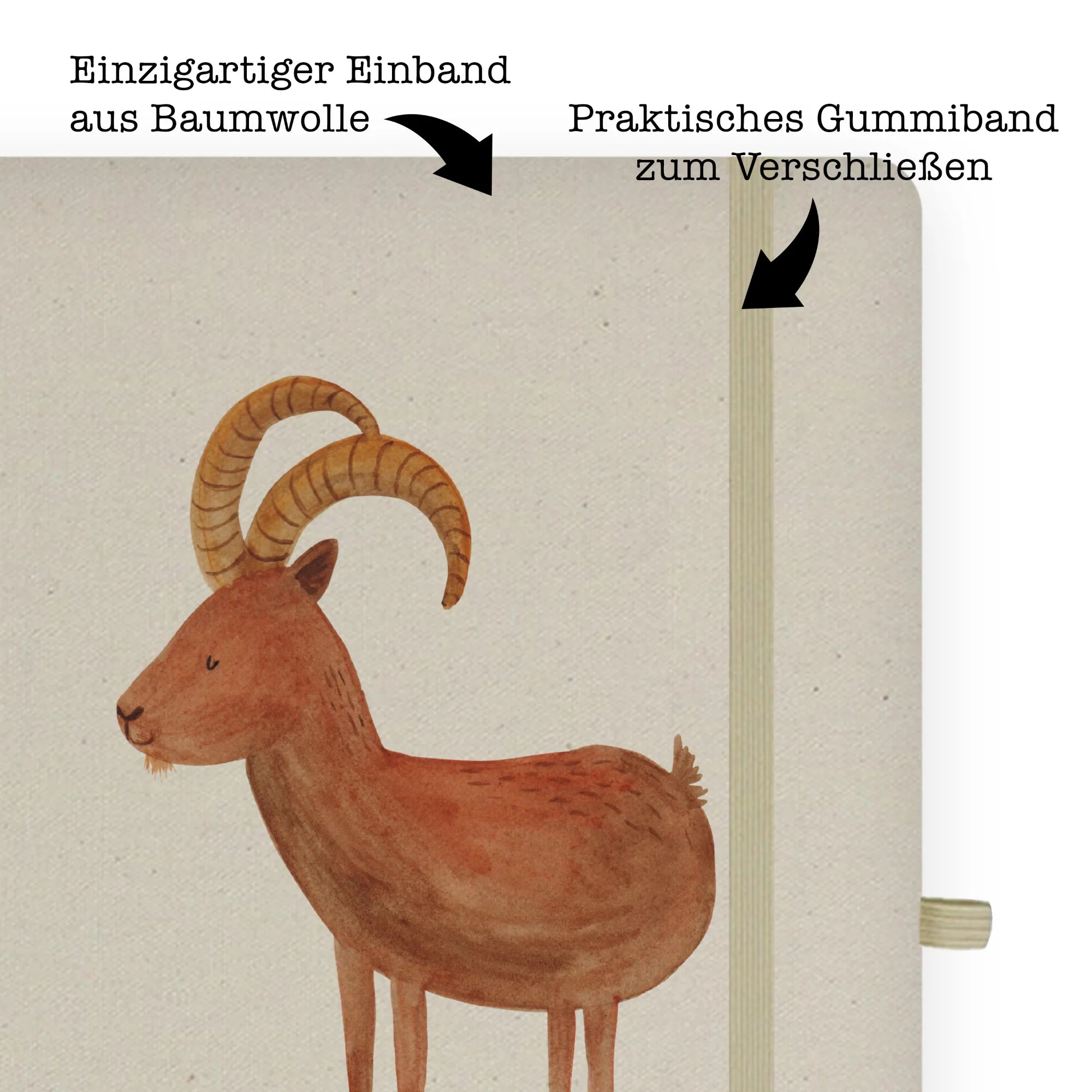 Das DIN A5 Baumwoll Notizbuch mit dem süßen Motiv des Sternzeichens Steinbock von Mr. & Mrs. Panda ist das perfekte Geschenk für alle, die im Zeitraum von Dezember bis Januar geboren sind. Ob zum Geburtstag, zu Weihnachten oder einfach nur als kleine Aufmerksamkeit – dieser liebevoll gestaltete Notizblock bringt Freude in den Alltag. Das Motiv zeigt einen stattlichen Steinbock, der mit seinen wundervollen Hörnern genau das richtige Maß an Willenskraft und Zuverlässigkeit widerspiegelt. Mit dem eingängigen Spruch „Willensstark und zuverlässig wie ein Steinbock“ ist dieses Notizbuch ideal für Schüler, Studenten, kreative Köpfe oder einfach für jeden, der seine Gedanken und Ideen festhalten möchte.