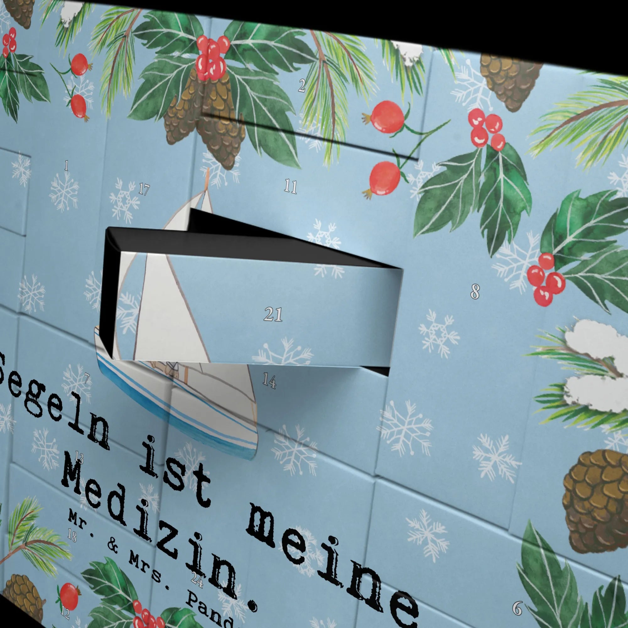 Der befüllbare Adventskalender "Bär Segeln Medizin" von Mr. & Mrs. Panda ist das perfekte Geschenk für all jene, die das Abenteuer auf dem Wasser lieben und sich während der Adventszeit etwas ganz Besonderes wünschen. Mit einem liebevoll gestalteten Bären im Matrosenhut, der mit einem Segelboot über die Wellen gleitet, bringt dieser Adventskalender die Seefahrer-Stimmung direkt ins Wohnzimmer. Der Spruch "Segeln ist meine Medizin" spricht Sportler und Hobbysegler an, die beim Segeln die Seele baumeln lassen und den Wind in den Haaren spüren möchten.