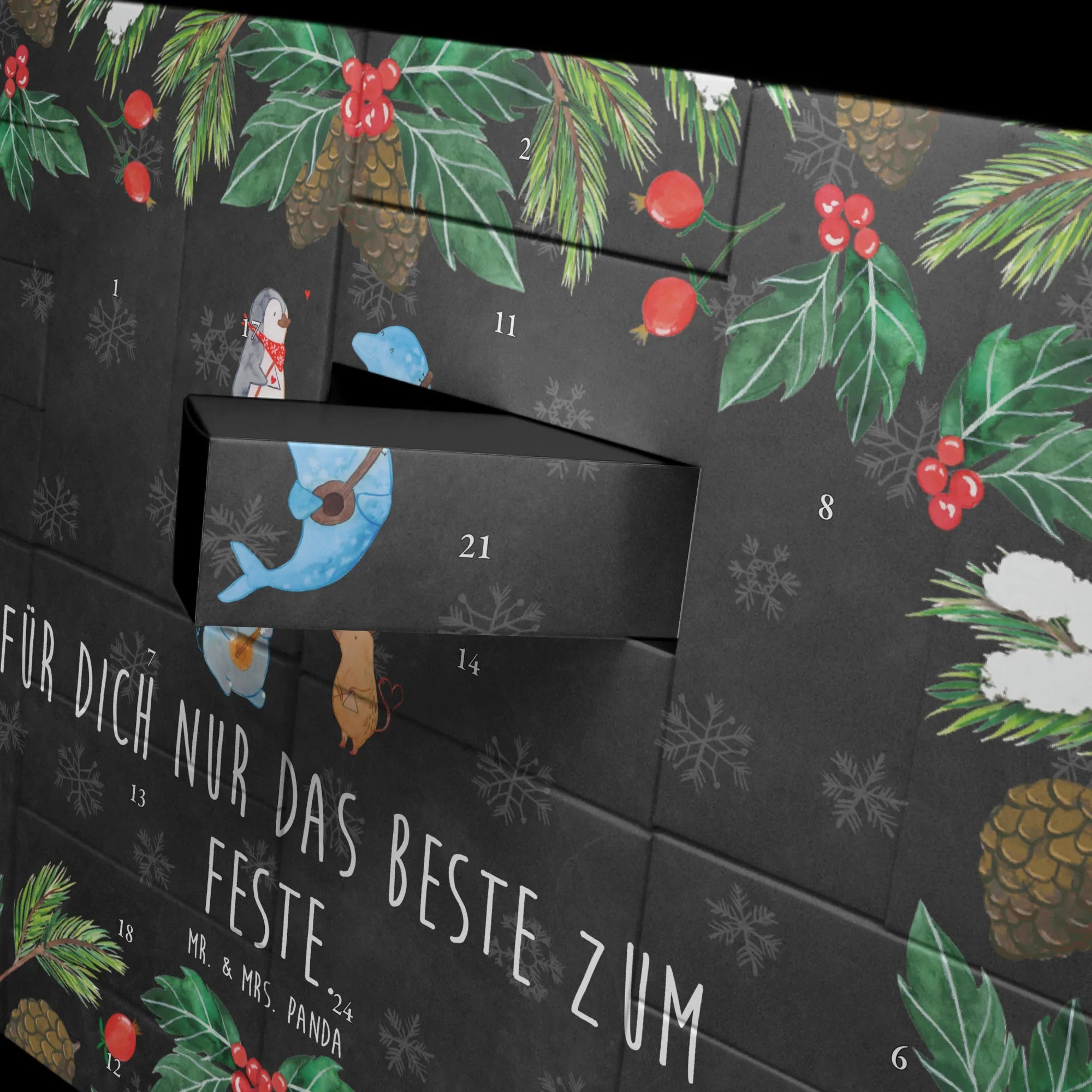 Mit unserem charmanten Adventskalender zum selbst befüllen bringst du Musik und Tierfreunde in deine Adventszeit. Die fröhliche Big-Band-Truppe – ein Pinguin, eine Maus, ein Delfin und ein Elefant – musiziert in bunten Kostümen und lädt sofort zum Mitsummen, Mittanzen und Staunen ein. Auf der Vorderseite findest du eine liebevolle Zeichnung von Mrs. Panda und den herzlichen Spruch: „Für dich nur das Beste zum Feste.“