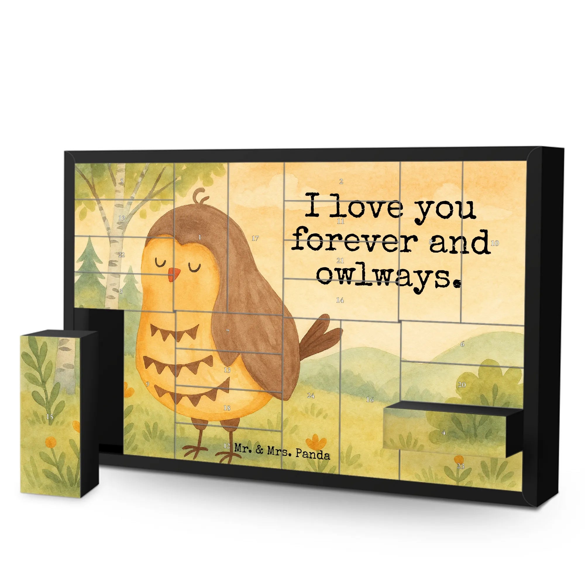Befüllbarer Adventskalender Eule Zufrieden Design - mit Spruch