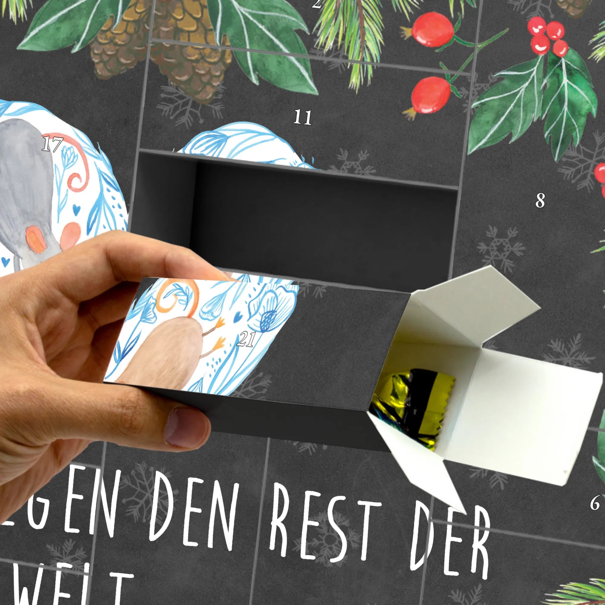 Der befüllbare Adventskalender "Mäuse Herz" von Mr. & Mrs. Panda ist die perfekte Geschenkidee für alle, die ihre Liebe zum Ausdruck bringen möchten. Dieses wunderschöne Exemplar ist nicht nur ein Adventskalender, sondern auch ein Liebesgeständnis, das direkt vom Herzen kommt! Mit dem liebevoll gestalteten Motiv von zwei niedlichen Mäusen, die sich zu einem Herz formen, verkörpert er das Motto "Wir zwei gegen den Rest der Welt." Die einzigartigen Aquarellfarben verleihen dem Kalender einen romantischen und einladenden Charme, während die zarten floralen Elemente im Hintergrund eine warme Atmosphäre schaffen.
