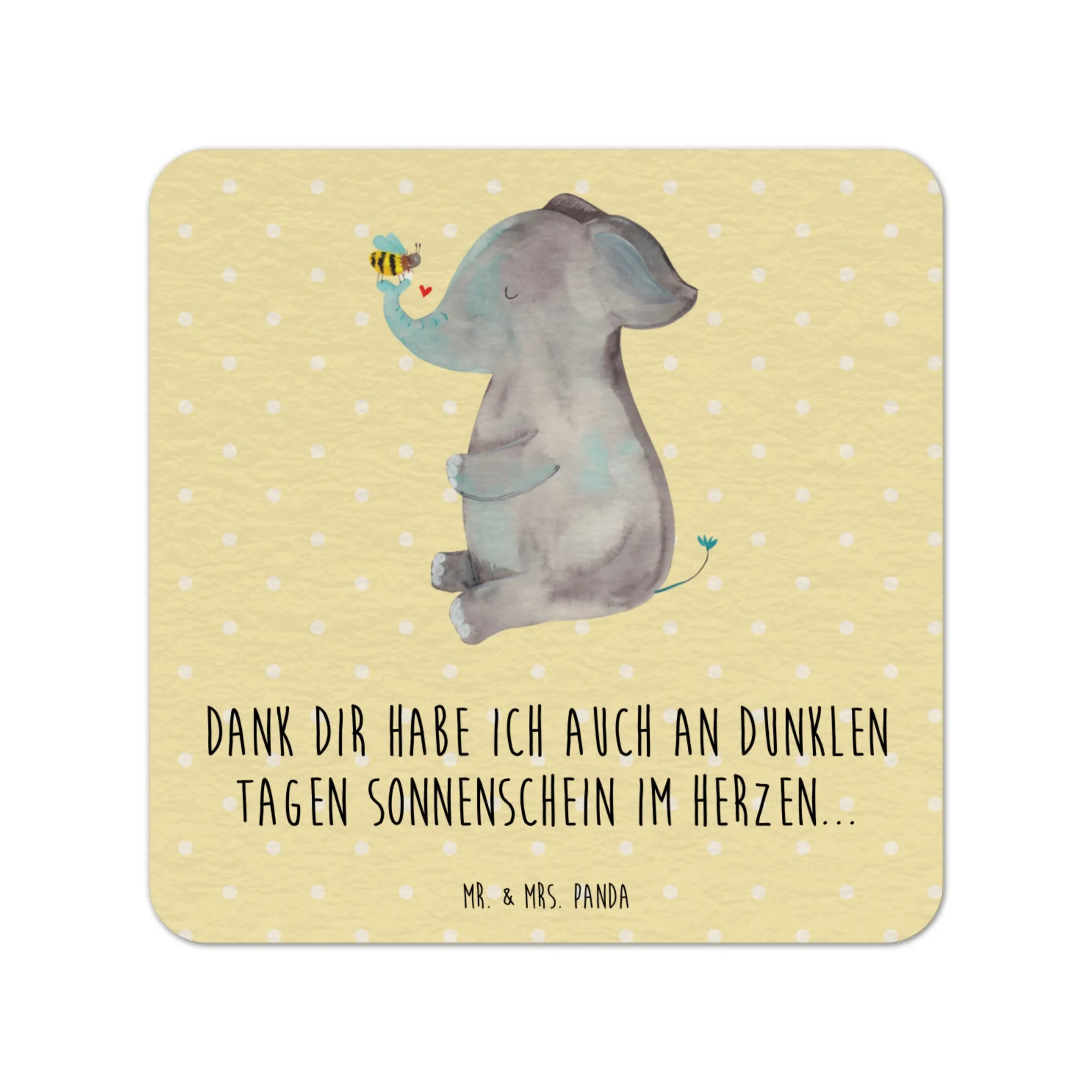 Suchst Du das perfekte Gastgeschenk für Deine Hochzeit oder eine festliche Dekoration für Deinen Tisch? Dann sind die Bierdeckel mit dem süßen Motiv "Elefant & Biene" aus der beliebten "Small World" Kollektion von Mr. & Mrs. Panda genau das Richtige für Dich!