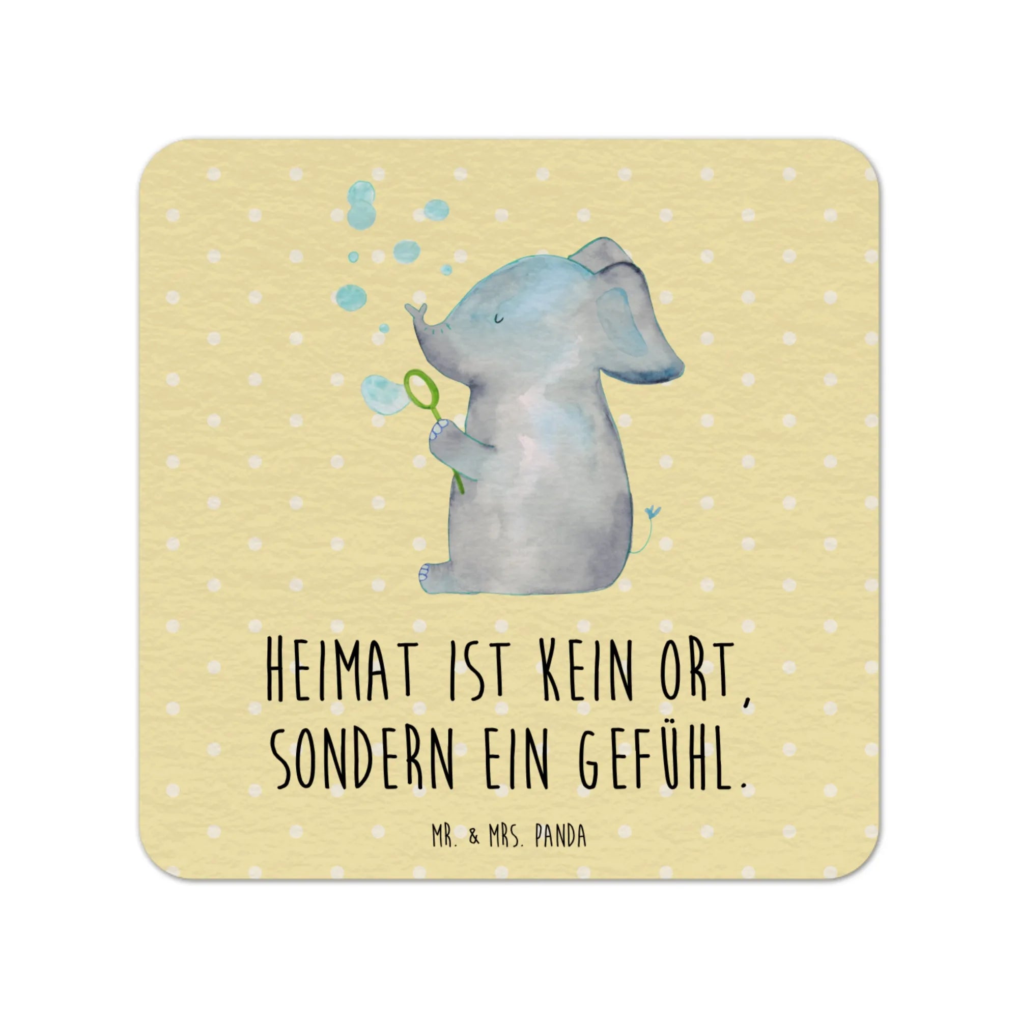 Entdecke unseren zauberhaften Bierdeckel "Elefant Seifenblasen" aus der einzigartigen Small World Kollektion von Mr. & Mrs. Panda! Dieser quadratische Bierdeckel in Pastellgelb ist nicht nur praktisch, sondern bringt auch einen Hauch von Freude und Unbeschwertheit auf jeden Tisch.