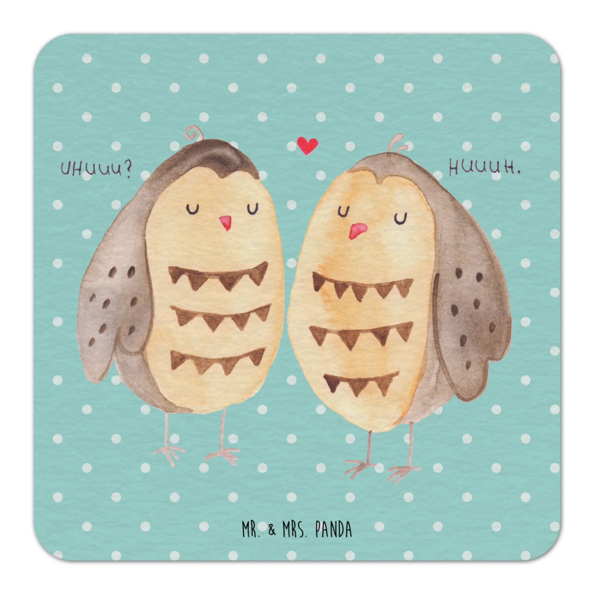 Bierdeckel Eule Liebe von Mr. & Mrs. Panda – das perfekte Gastgeschenk für Hochzeiten, Geburtstagsfeiern und andere Anlässe! Wenn Du auf der Suche nach einem liebevollen und zugleich praktischen Geschenk bist, dann ist unser quadratischer Bierdeckel mit dem zauberhaften Motiv der verliebten Eulen genau das richtige für Dich. Die beiden niedlichen Eulen, die eng umschlungen auf einem Ast sitzen, bringen nicht nur Dein Herz zum Schmelzen, sondern sind auch ein stilvolles Accessoire für jeden Tisch.