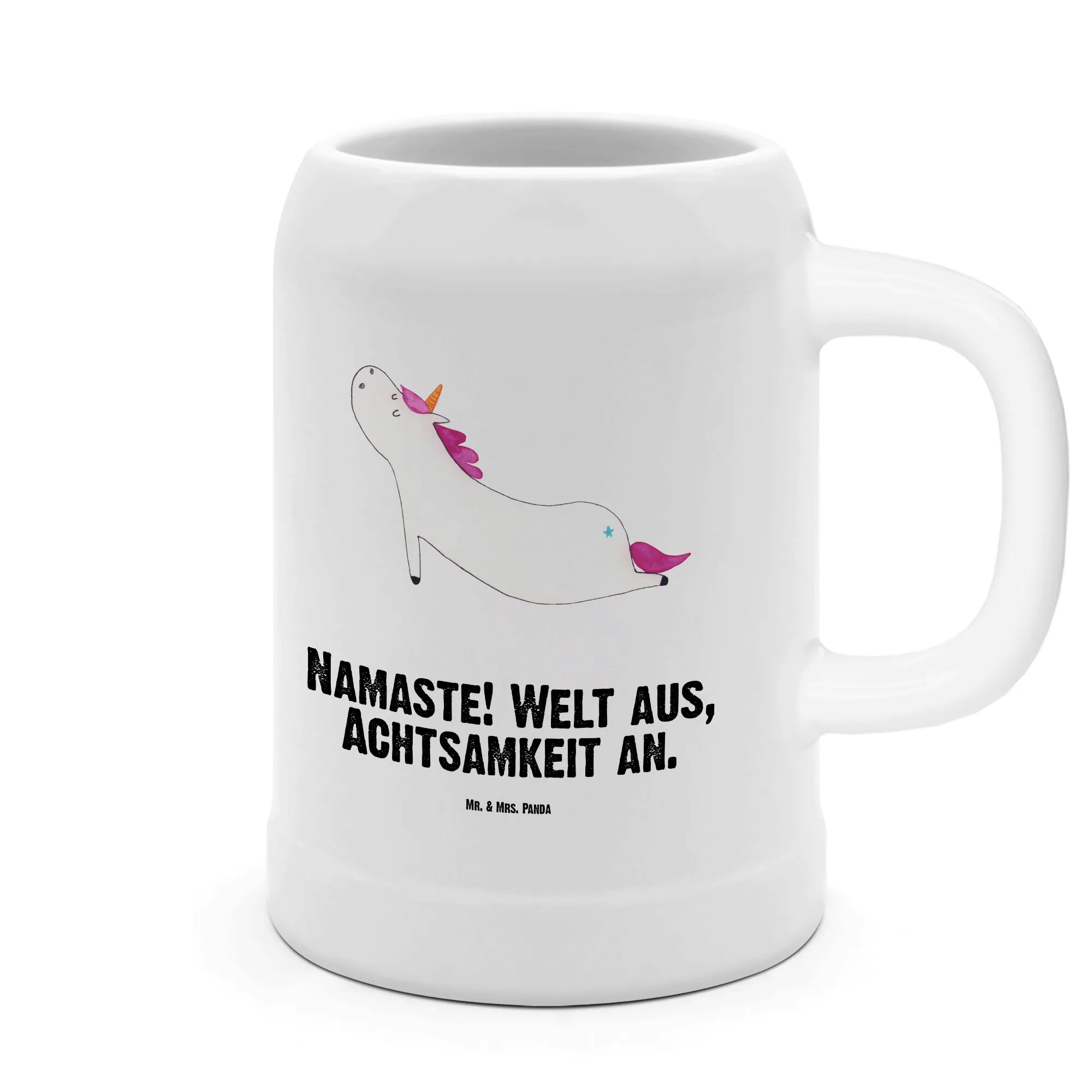 Der Bierkrug 'Einhorn Yoga' aus der zauberhaften Einhorn-Kollektion von Mr. & Mrs. Panda ist das perfekte Geschenk für alle, die die magische Welt der Einhörner und die Harmonie des Yoga lieben! Mit einem Füllvolumen von 500 ml bietet dieser robuste Steingutkrug genug Platz für dein kühles Bier oder erfrischende Getränke. Sein niedliches, handgezeichnetes Einhorn-Motiv mit dem entspannenden Yoga-Thema sorgt bereits beim Anblick für gute Laune und bringt ein lächeln in deinen Alltag.