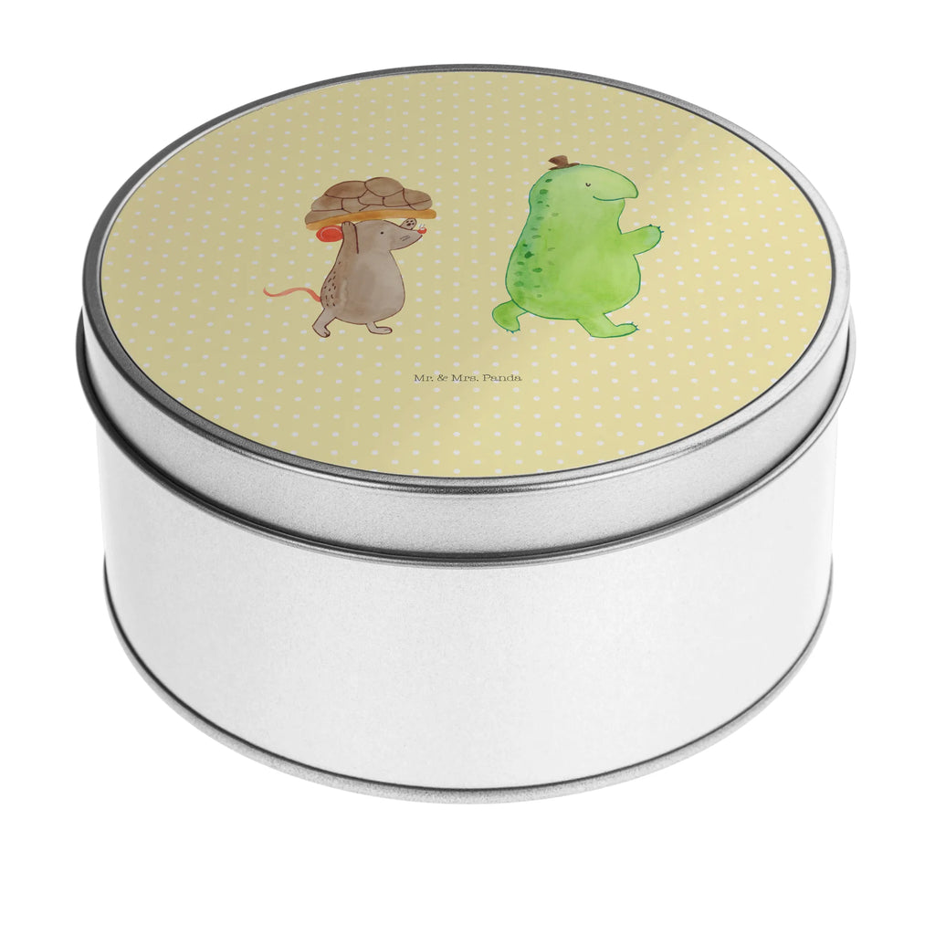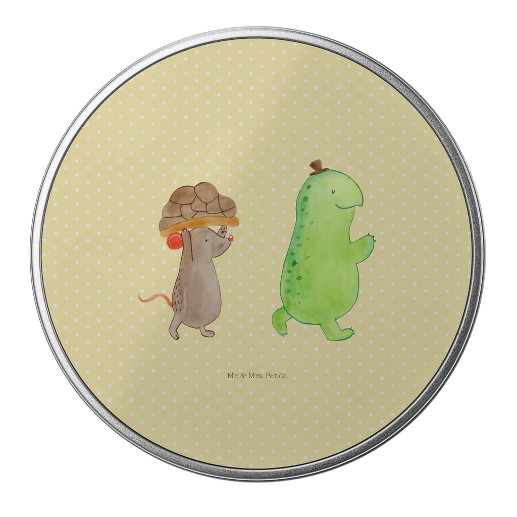 Entdecke die zauberhafte runde Blechdose von Mr. & Mrs. Panda, verziert mit dem putzigen Motiv einer Schildkröte und ihrer besten Freundin, der kleinen Maus. Dieses wunderschöne Design bringt Freude und Fröhlichkeit in jeden Raum und ist mehr als nur ein Aufbewahrungsort – es ist ein Statement für Freundschaft!
