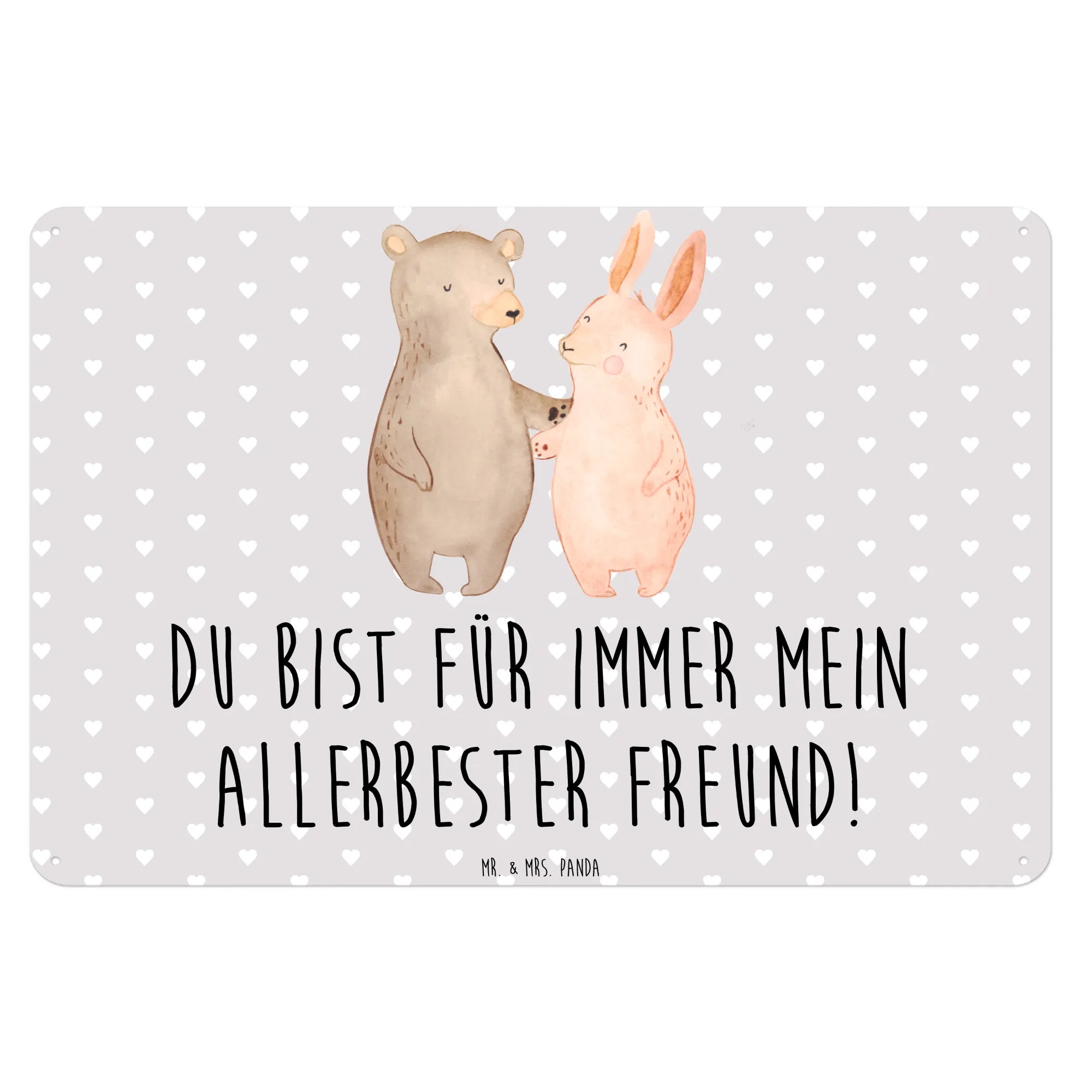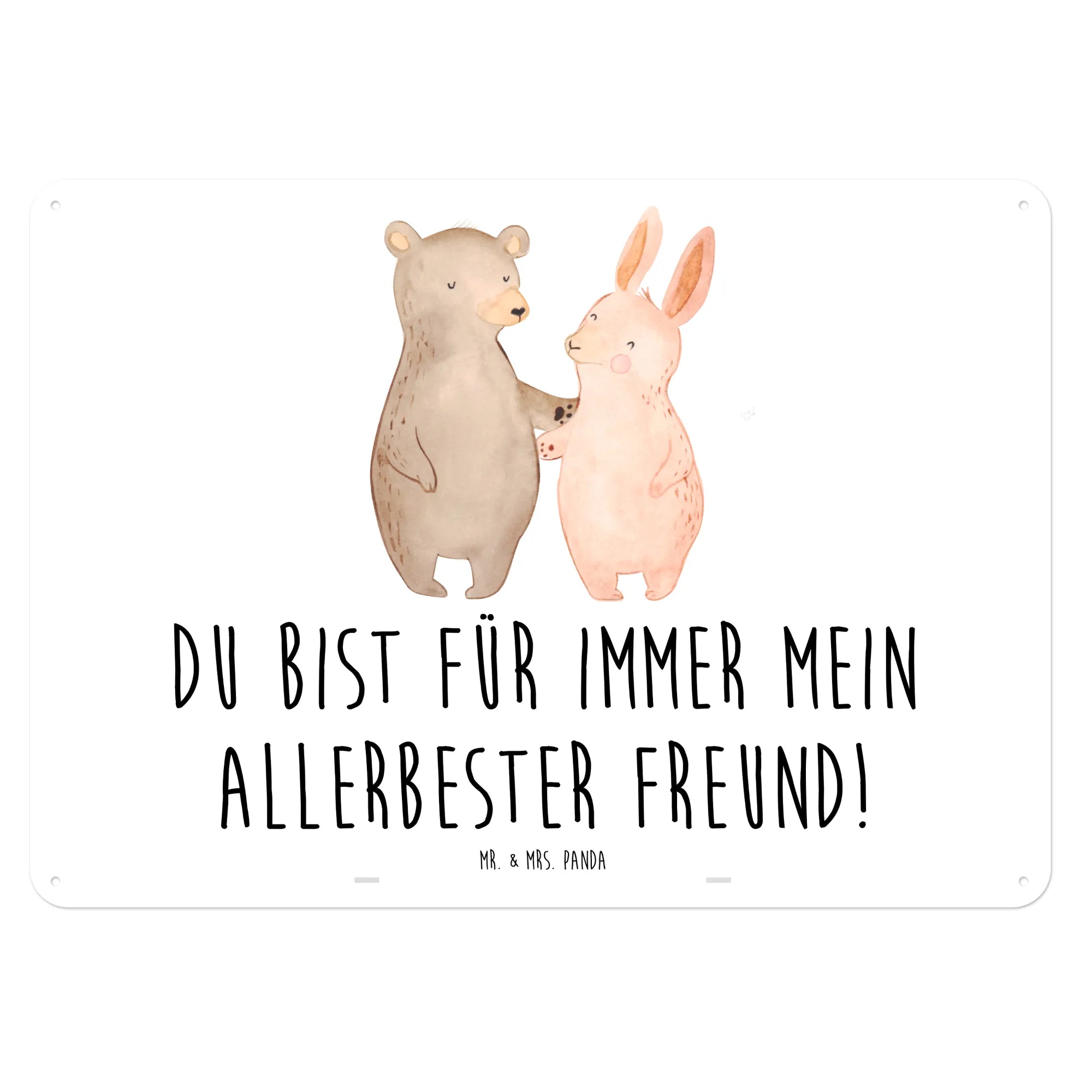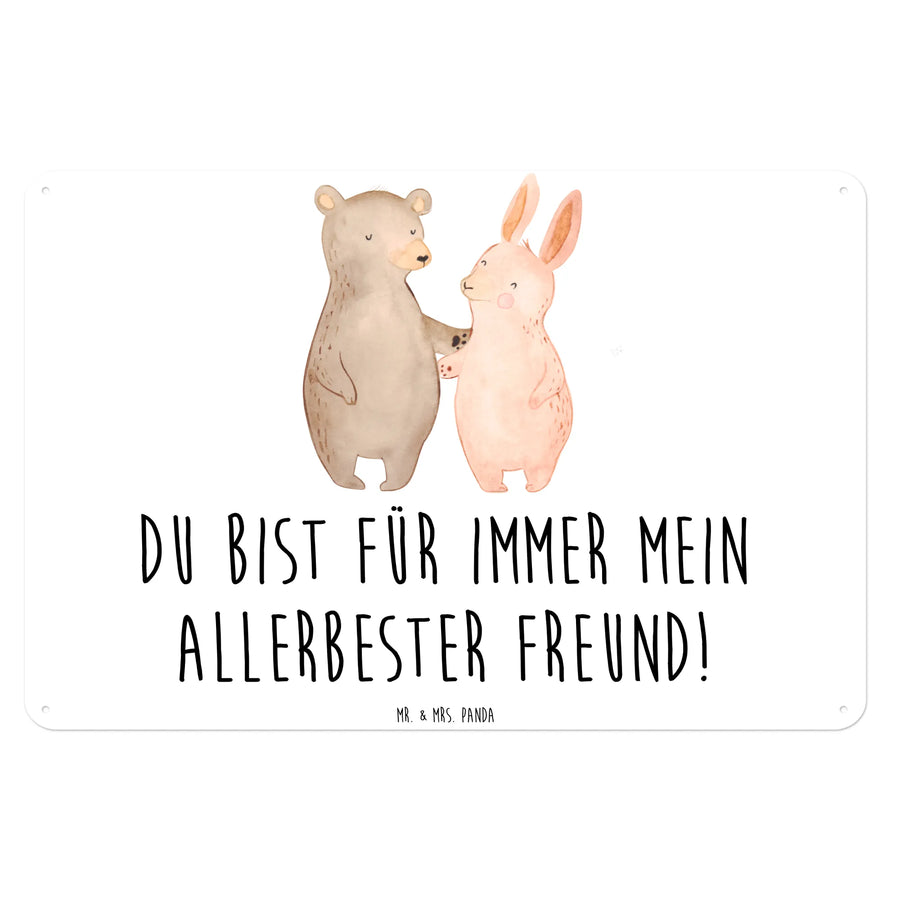 Entdecke unser wunderschönes und edles Blechschild von Mr. & Mrs. Panda, das mit viel Liebe und einem zauberhaften Motiv von einem Bär und einem Hasen in inniger Umarmung gestaltet ist. Dieses Schild verkörpert die unendliche Freundschaft und Verbundenheit, und der liebevolle Slogan "Du bist für immer mein allerbester Freund!" wird das Herz deines besten Freundes oder deiner besten Freundin garantiert höher schlagen lassen.